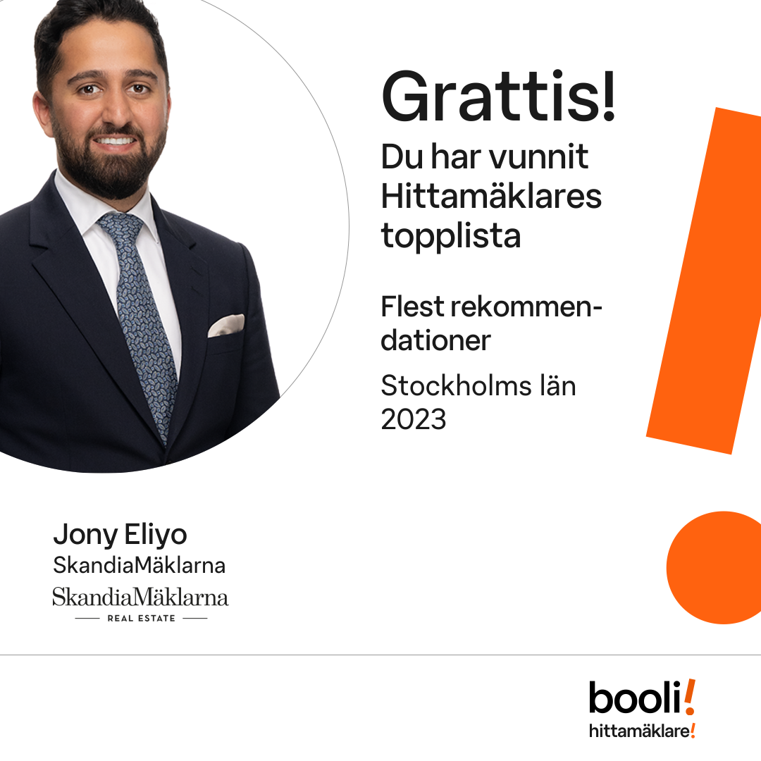 Statistik för publicerade bostäder, försäljningar och omdömen baseras på data från Booli och Hittamäklare. Statistiken för försäljningar avser inrapporterade och verifierade slutpriser från mäklare eller av Booli inhämtade och verifierade slutpriser. Statistiken för publicerade bostäder baseras på information som publicerats på Booli.se. Statistik för omdömen och rekommendationer baseras på omdömen från säljare som lämnats via Booli och Hittamäklare.