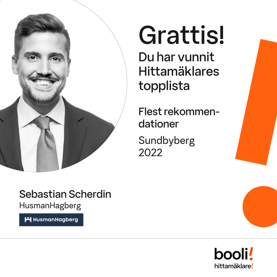 Statistik för publicerade bostäder, försäljningar och omdömen baseras på data från Booli och Hittamäklare. Statistiken för försäljningar avser inrapporterade och verifierade slutpriser från mäklare eller av Booli inhämtade och verifierade slutpriser. Statistiken för publicerade bostäder baseras på information som publicerats på Booli.se. Statistik för omdömen och rekommendationer baseras på omdömen från säljare som lämnats via Booli och Hittamäklare.