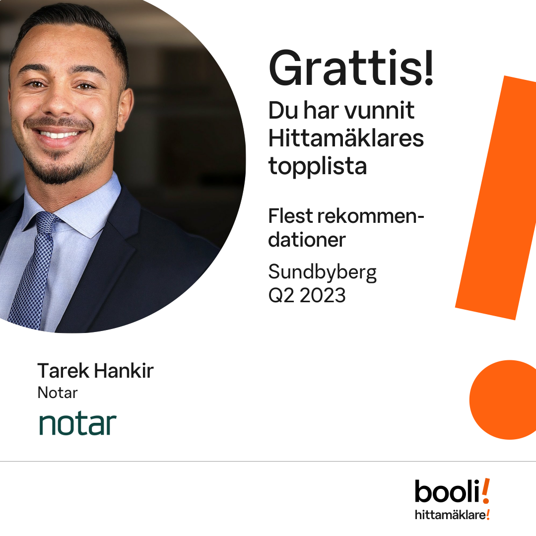 Statistik för publicerade bostäder, försäljningar och omdömen baseras på data från Booli och Hittamäklare. Statistiken för försäljningar avser inrapporterade och verifierade slutpriser från mäklare eller av Booli inhämtade och verifierade slutpriser. Statistiken för publicerade bostäder baseras på information som publicerats på Booli.se. Statistik för omdömen och rekommendationer baseras på omdömen från säljare som lämnats via Booli och Hittamäklare.