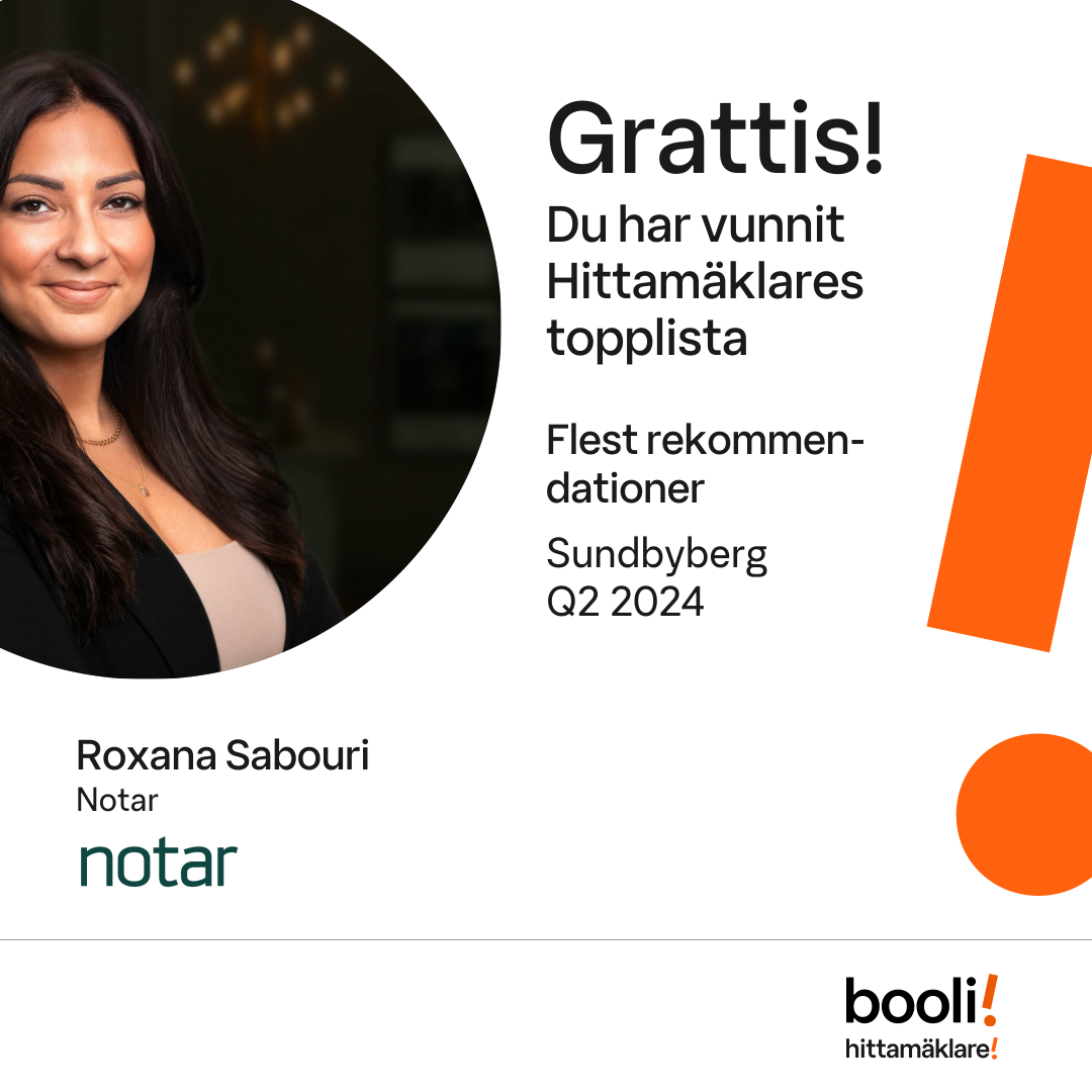 Statistik för publicerade bostäder, försäljningar och omdömen baseras på data från Booli och Hittamäklare. Statistiken för försäljningar avser inrapporterade och verifierade slutpriser från mäklare eller av Booli inhämtade och verifierade slutpriser. Statistiken för publicerade bostäder baseras på information som publicerats på Booli.se. Statistik för omdömen och rekommendationer baseras på omdömen från säljare som lämnats via Booli och Hittamäklare.