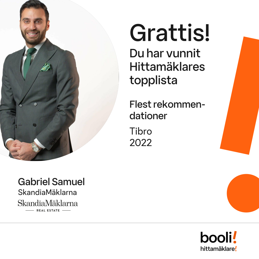 Statistik för publicerade bostäder, försäljningar och omdömen baseras på data från Booli och Hittamäklare. Statistiken för försäljningar avser inrapporterade och verifierade slutpriser från mäklare eller av Booli inhämtade och verifierade slutpriser. Statistiken för publicerade bostäder baseras på information som publicerats på Booli.se. Statistik för omdömen och rekommendationer baseras på omdömen från säljare som lämnats via Booli och Hittamäklare.