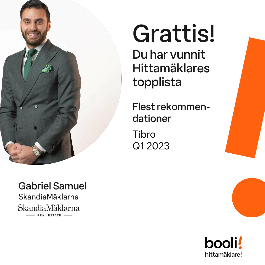 Statistik för publicerade bostäder, försäljningar och omdömen baseras på data från Booli och Hittamäklare. Statistiken för försäljningar avser inrapporterade och verifierade slutpriser från mäklare eller av Booli inhämtade och verifierade slutpriser. Statistiken för publicerade bostäder baseras på information som publicerats på Booli.se. Statistik för omdömen och rekommendationer baseras på omdömen från säljare som lämnats via Booli och Hittamäklare.