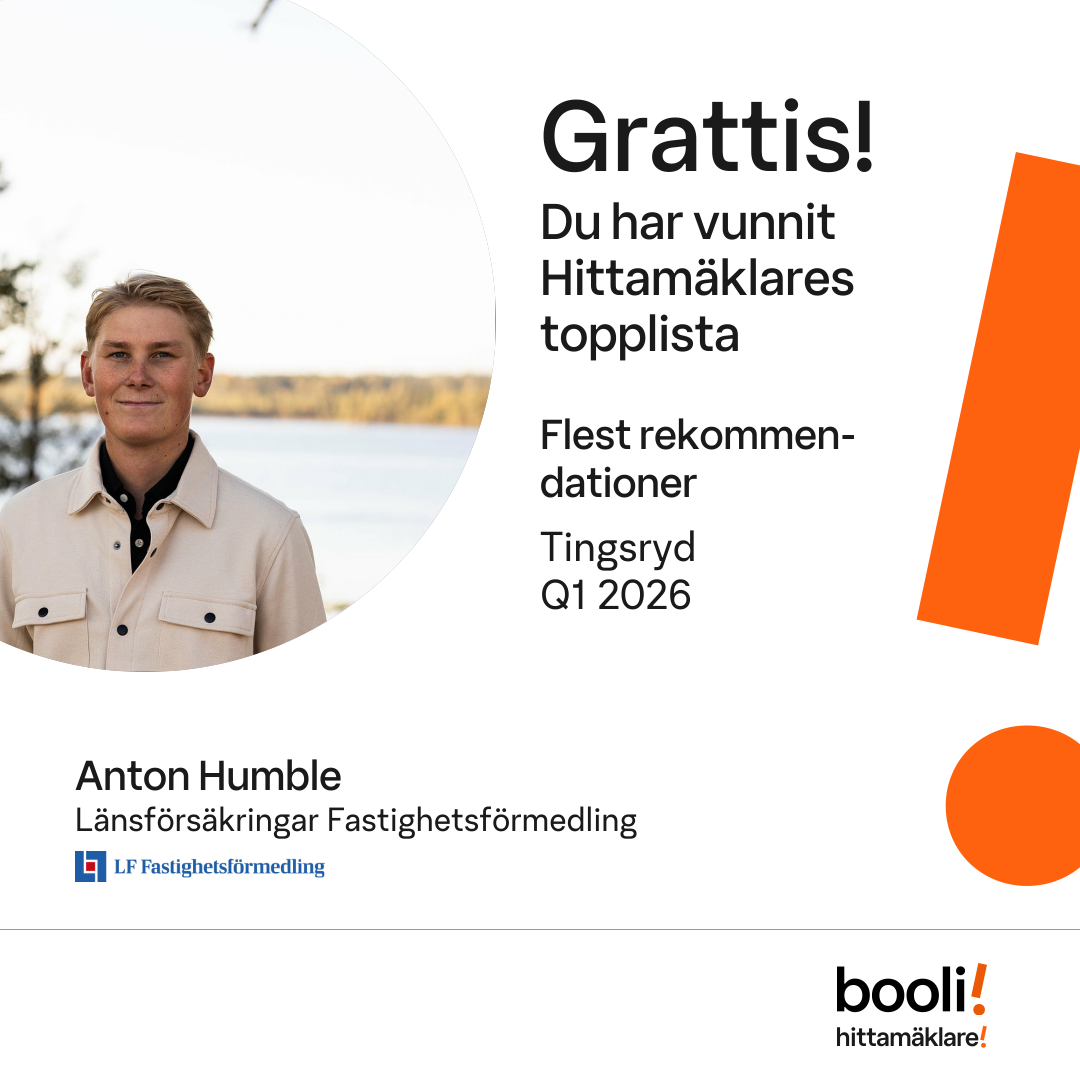 Mäklarna med flest rekommendationer i Tingsryd första kvartalet 2026 enligt vår statistik. Publicerad 2026-04-08.