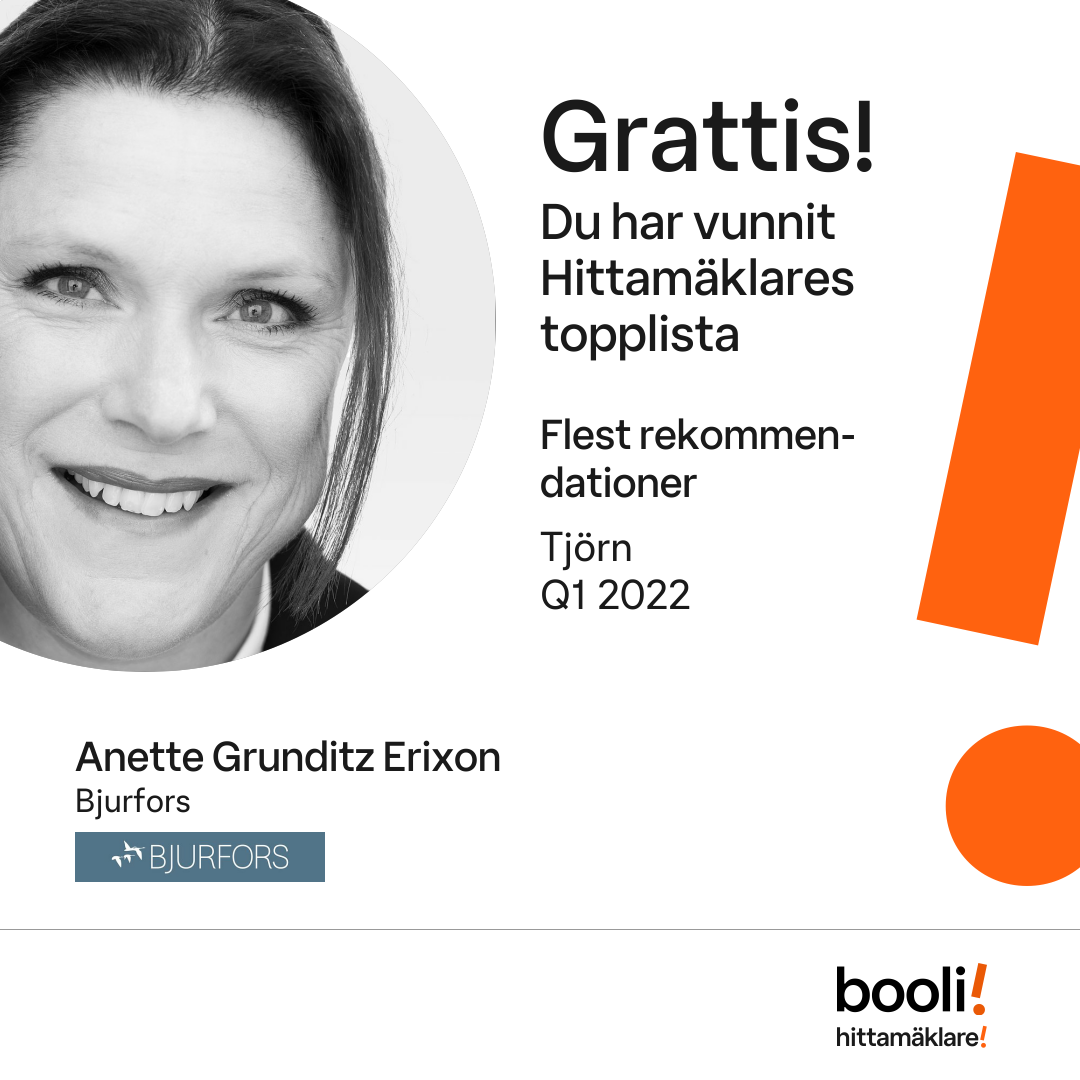 Statistik för publicerade bostäder, försäljningar och omdömen baseras på data från Booli och Hittamäklare. Statistiken för försäljningar avser inrapporterade och verifierade slutpriser från mäklare eller av Booli inhämtade och verifierade slutpriser. Statistiken för publicerade bostäder baseras på information som publicerats på Booli.se. Statistik för omdömen och rekommendationer baseras på omdömen från säljare som lämnats via Booli och Hittamäklare.