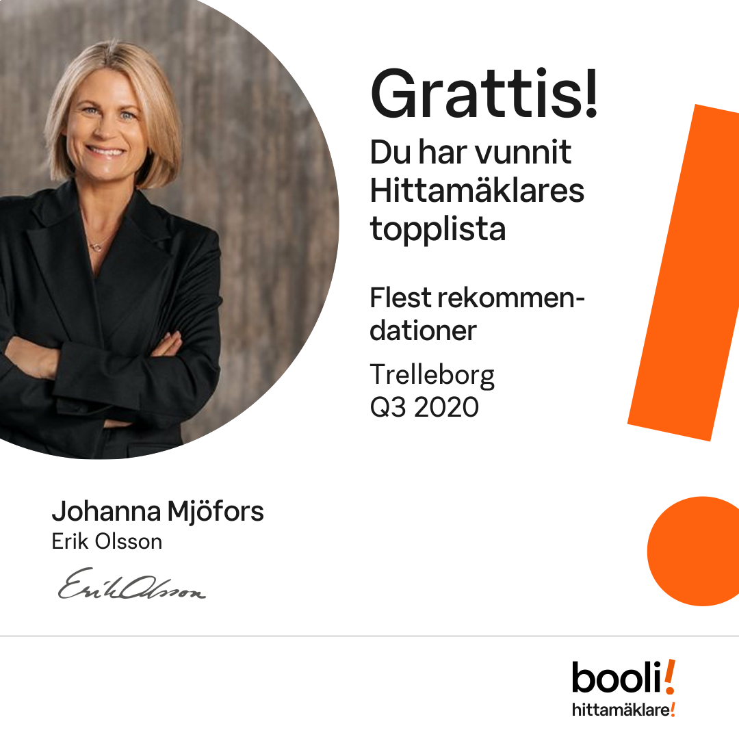 Mäklarna med flest rekommendationer i Trelleborg tredje kvartalet 2020 enligt vår statistik. Publicerad 2020-10-07.
