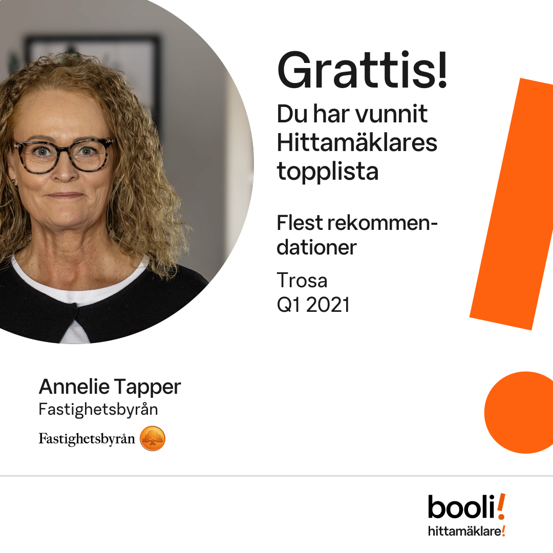Mäklarna med flest rekommendationer i Trosa första kvartalet 2021 enligt vår statistik. Publicerad 2021-04-06.