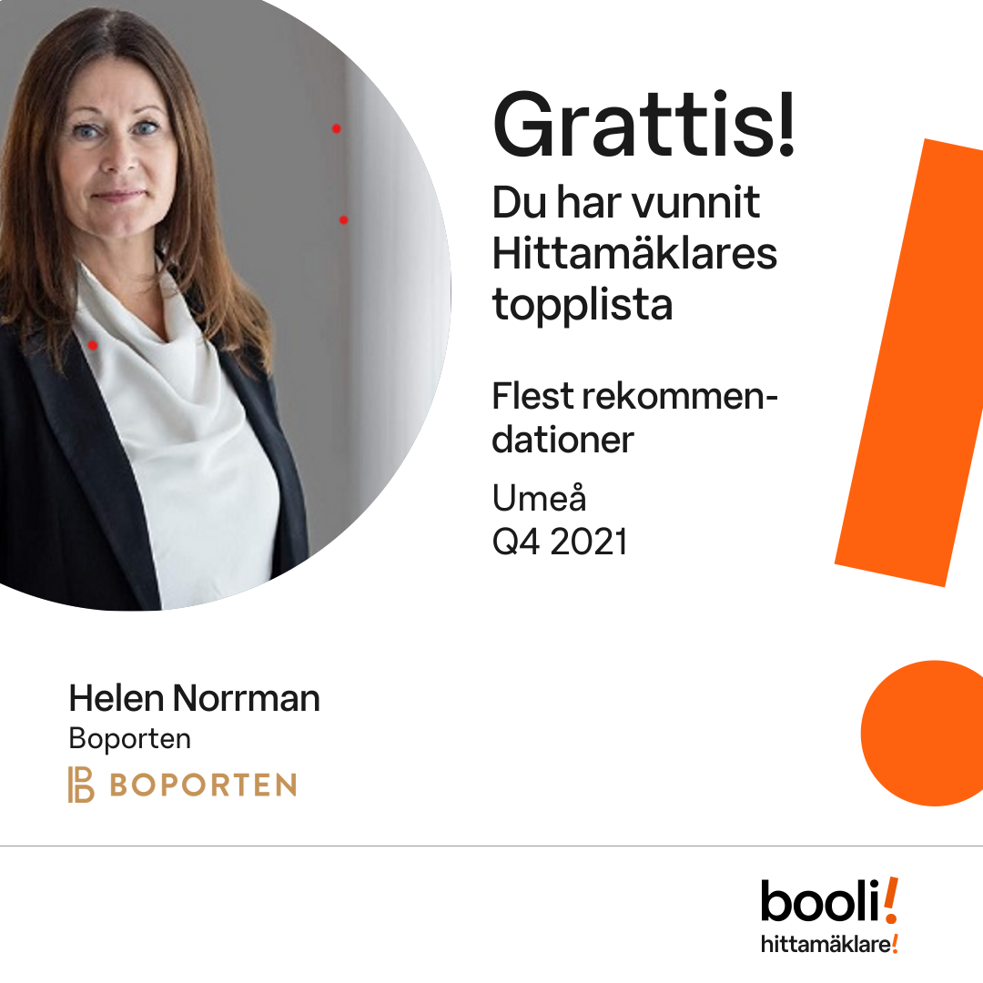 Mäklarna med flest rekommendationer i Umeå fjärde kvartalet 2021 enligt vår statistik. Publicerad 2022-01-10.