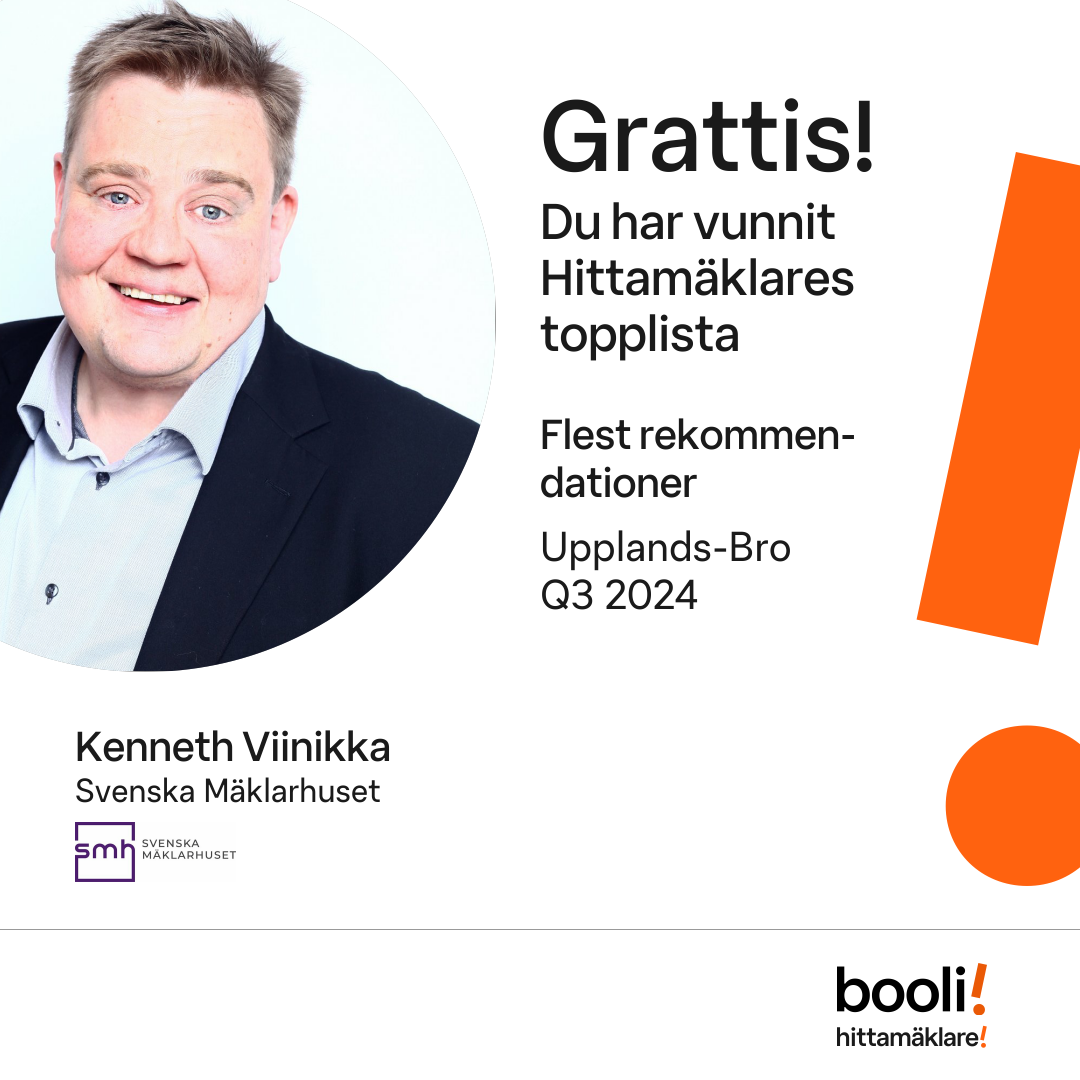 Mäklarna med flest rekommendationer i Upplands-Bro tredje kvartalet 2024 enligt vår statistik. Publicerad 2024-10-03.