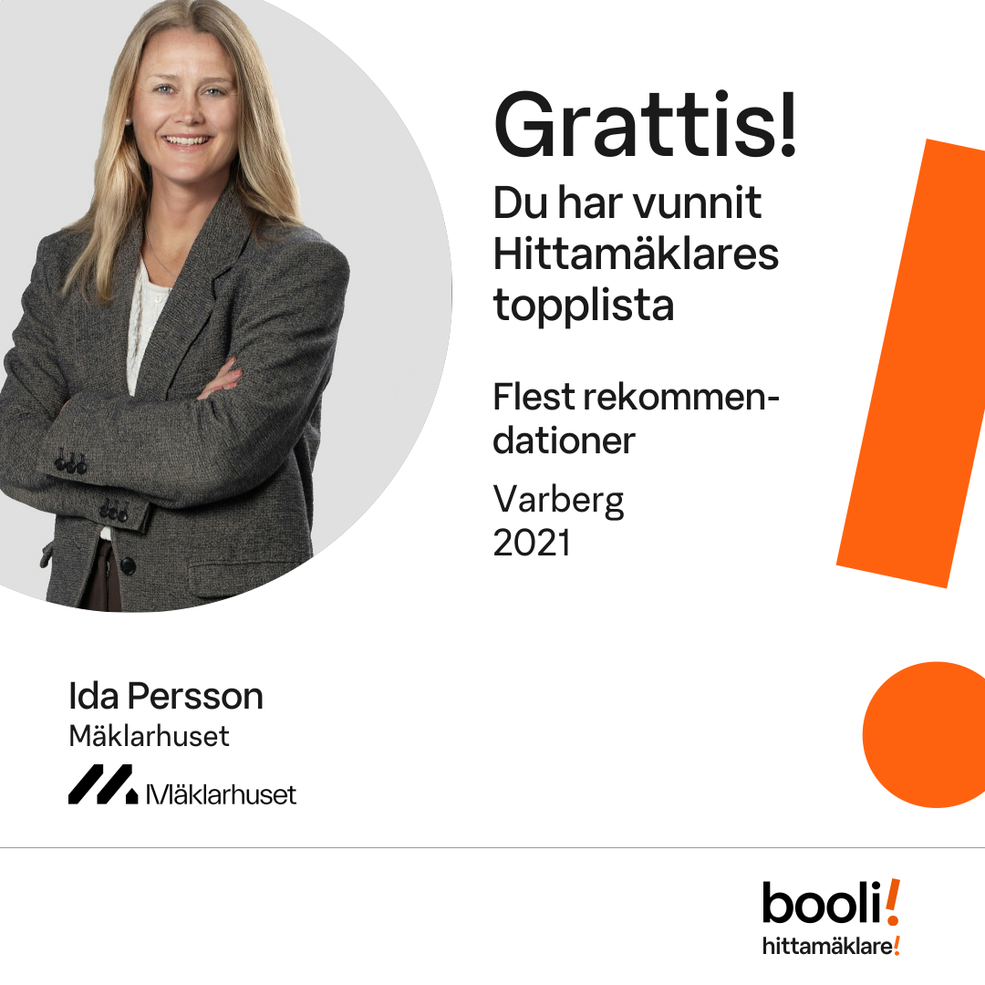 Statistik för publicerade bostäder, försäljningar och omdömen baseras på data från Booli och Hittamäklare. Statistiken för försäljningar avser inrapporterade och verifierade slutpriser från mäklare eller av Booli inhämtade och verifierade slutpriser. Statistiken för publicerade bostäder baseras på information som publicerats på Booli.se. Statistik för omdömen och rekommendationer baseras på omdömen från säljare som lämnats via Booli och Hittamäklare.