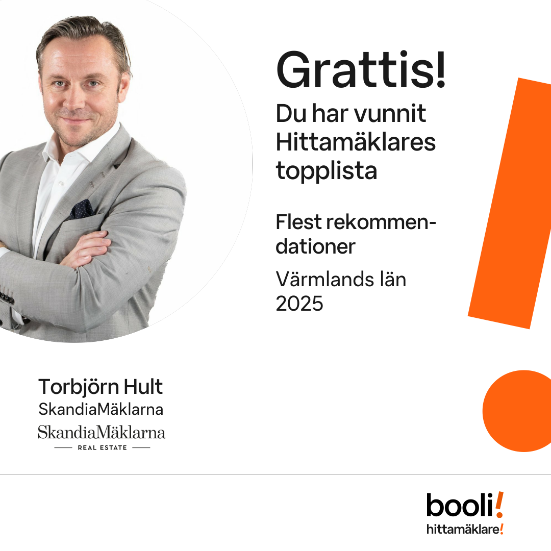 Statistik för publicerade bostäder, försäljningar och omdömen baseras på data från Booli och Hittamäklare. Statistiken för försäljningar avser inrapporterade och verifierade slutpriser från mäklare eller av Booli inhämtade och verifierade slutpriser. Statistiken för publicerade bostäder baseras på information som publicerats på Booli.se. Statistik för omdömen och rekommendationer baseras på omdömen från säljare som lämnats via Booli och Hittamäklare.