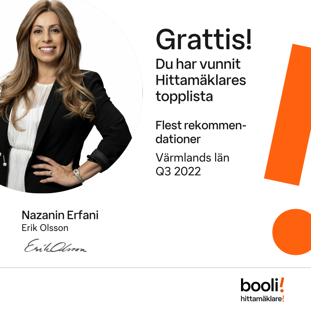 Statistik för publicerade bostäder, försäljningar och omdömen baseras på data från Booli och Hittamäklare. Statistiken för försäljningar avser inrapporterade och verifierade slutpriser från mäklare eller av Booli inhämtade och verifierade slutpriser. Statistiken för publicerade bostäder baseras på information som publicerats på Booli.se. Statistik för omdömen och rekommendationer baseras på omdömen från säljare som lämnats via Booli och Hittamäklare.