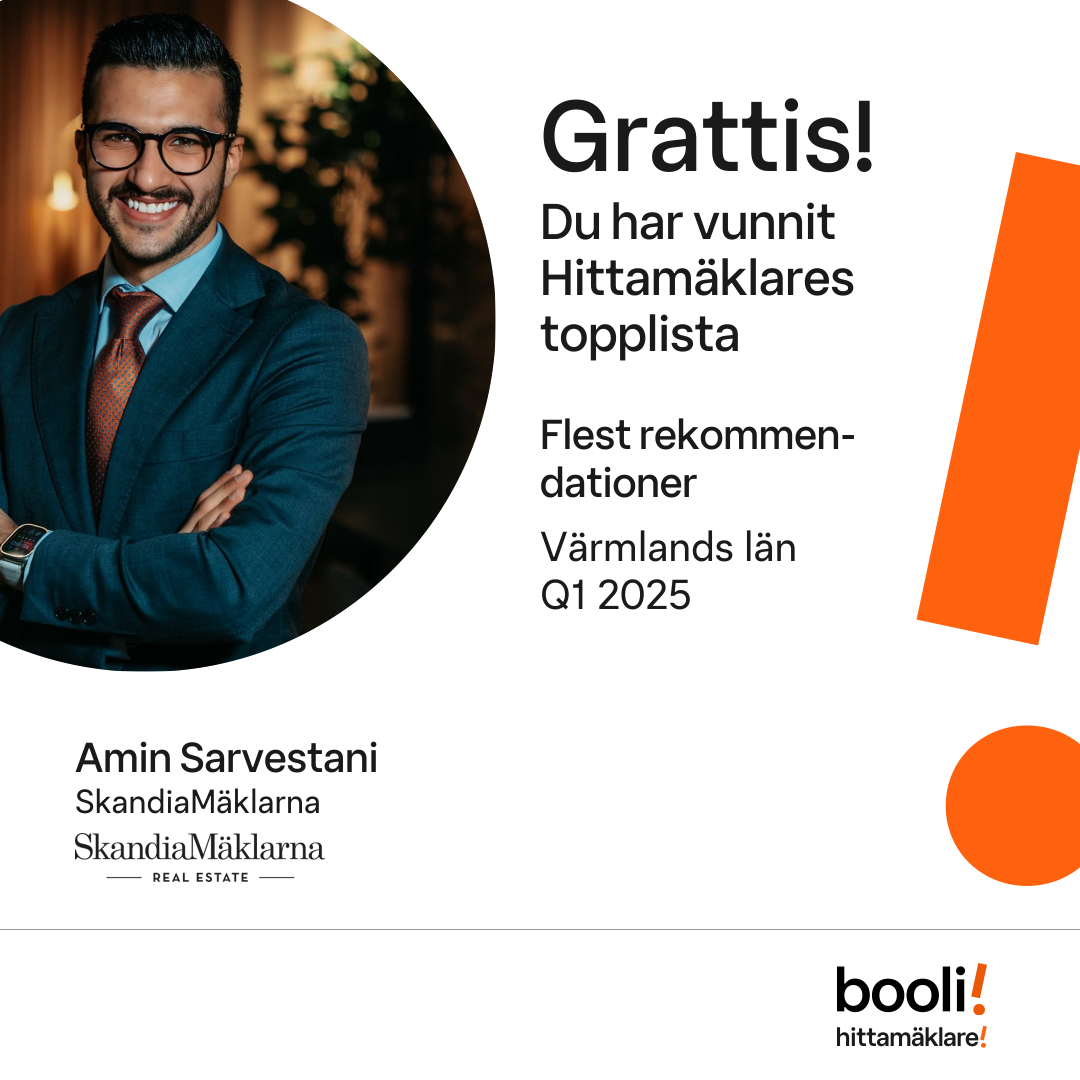 Statistik för publicerade bostäder, försäljningar och omdömen baseras på data från Booli och Hittamäklare. Statistiken för försäljningar avser inrapporterade och verifierade slutpriser från mäklare eller av Booli inhämtade och verifierade slutpriser. Statistiken för publicerade bostäder baseras på information som publicerats på Booli.se. Statistik för omdömen och rekommendationer baseras på omdömen från säljare som lämnats via Booli och Hittamäklare.