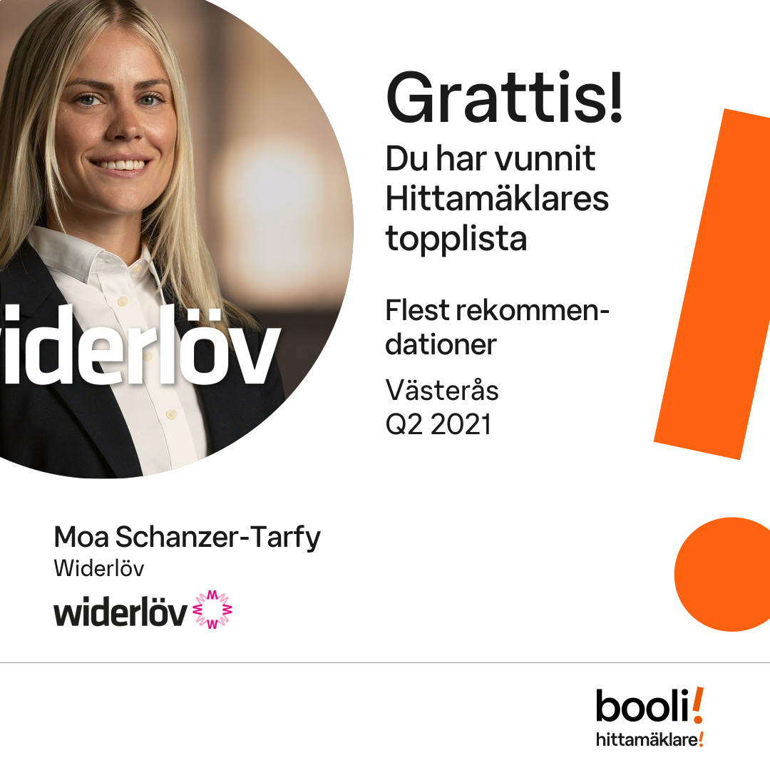 Statistik för publicerade bostäder, försäljningar och omdömen baseras på data från Booli och Hittamäklare. Statistiken för försäljningar avser inrapporterade och verifierade slutpriser från mäklare eller av Booli inhämtade och verifierade slutpriser. Statistiken för publicerade bostäder baseras på information som publicerats på Booli.se. Statistik för omdömen och rekommendationer baseras på omdömen från säljare som lämnats via Booli och Hittamäklare.