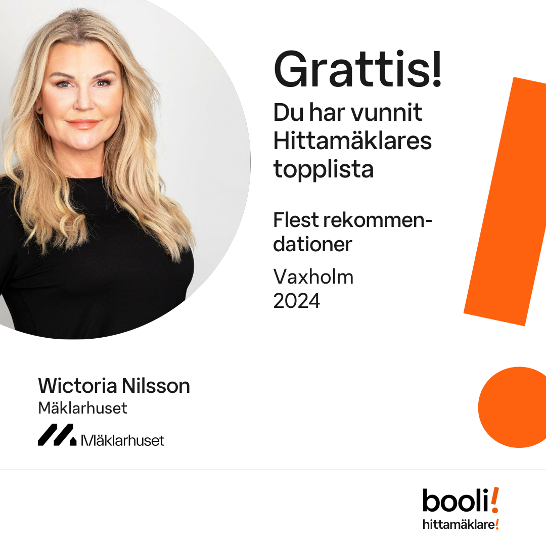 Statistik för publicerade bostäder, försäljningar och omdömen baseras på data från Booli och Hittamäklare. Statistiken för försäljningar avser inrapporterade och verifierade slutpriser från mäklare eller av Booli inhämtade och verifierade slutpriser. Statistiken för publicerade bostäder baseras på information som publicerats på Booli.se. Statistik för omdömen och rekommendationer baseras på omdömen från säljare som lämnats via Booli och Hittamäklare.