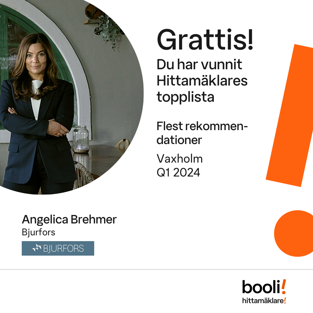 Statistik för publicerade bostäder, försäljningar och omdömen baseras på data från Booli. Statistiken för försäljningar avser inrapporterade och verifierade slutpriser från mäklare eller av Booli inhämtade och verifierade slutpriser. Statistiken för publicerade bostäder baseras på information som publicerats på Booli.se. Statistik för omdömen och rekommendationer baseras på omdömen från säljare som lämnats via Booli.