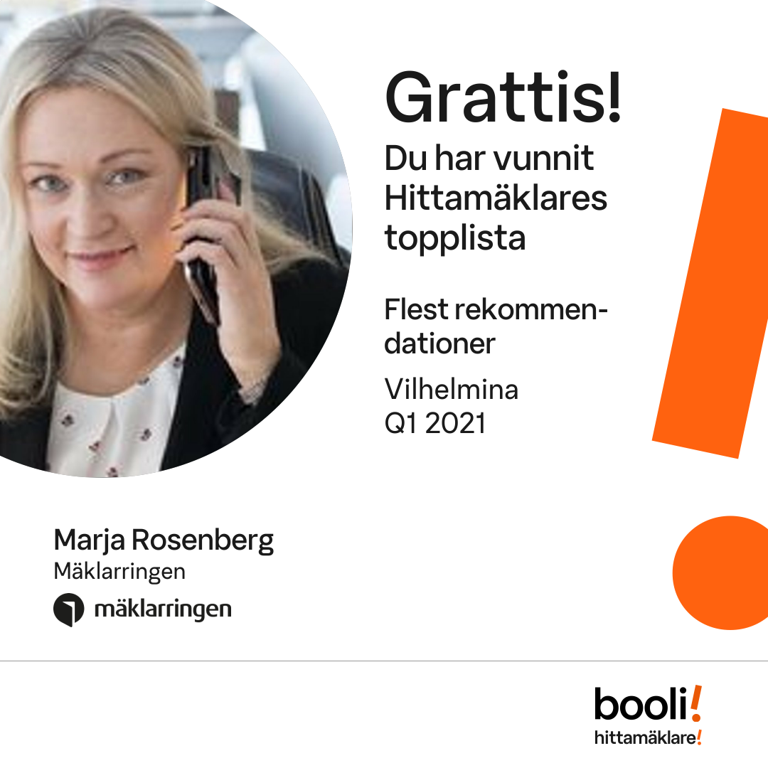 Statistik för publicerade bostäder, försäljningar och omdömen baseras på data från Booli och Hittamäklare. Statistiken för försäljningar avser inrapporterade och verifierade slutpriser från mäklare eller av Booli inhämtade och verifierade slutpriser. Statistiken för publicerade bostäder baseras på information som publicerats på Booli.se. Statistik för omdömen och rekommendationer baseras på omdömen från säljare som lämnats via Booli och Hittamäklare.