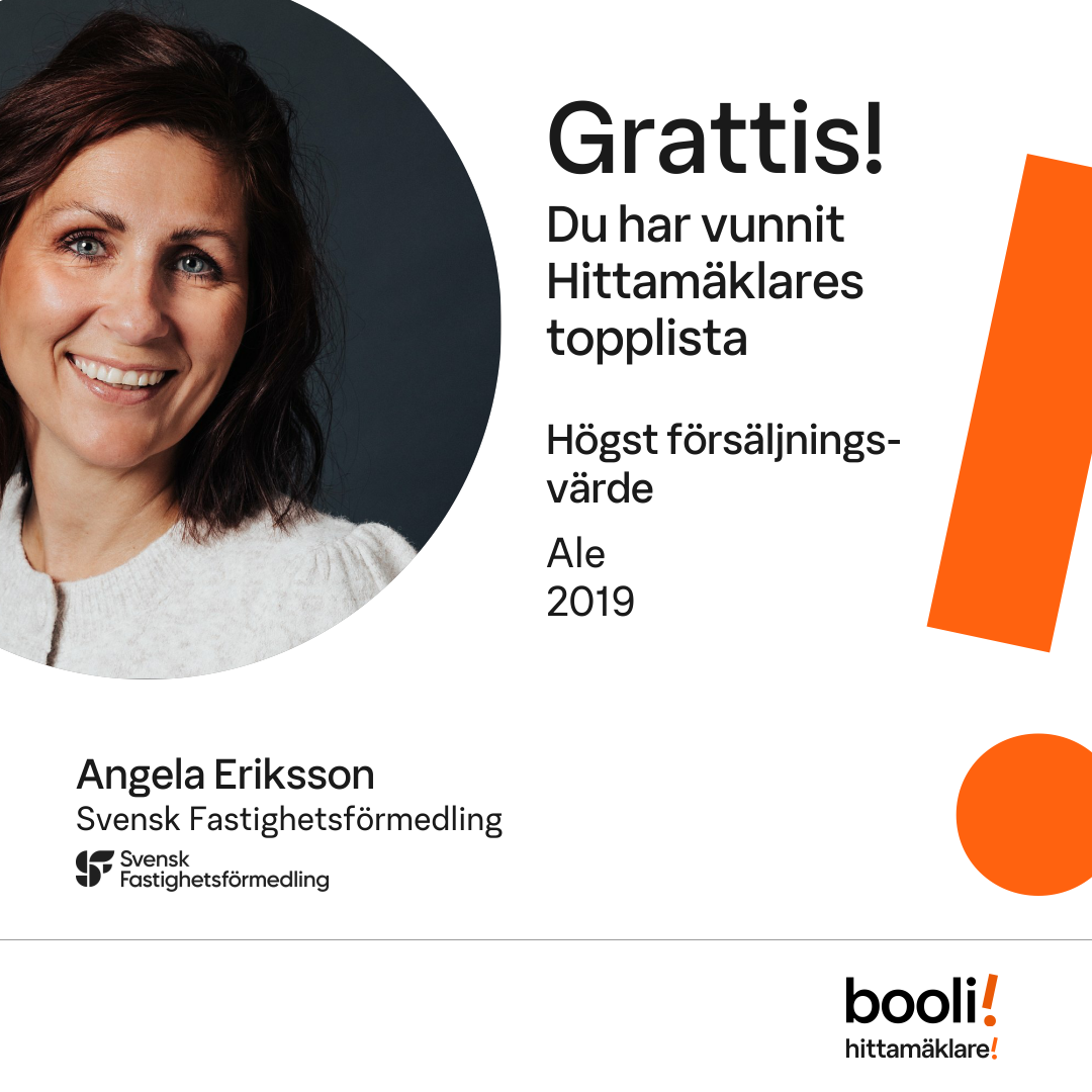 Statistik för publicerade bostäder, försäljningar och omdömen baseras på data från Booli. Statistiken för försäljningar avser inrapporterade och verifierade slutpriser från mäklare eller av Booli inhämtade och verifierade slutpriser. Statistiken för publicerade bostäder baseras på information som publicerats på Booli.se. Statistik för omdömen och rekommendationer baseras på omdömen från säljare som lämnats via Booli.