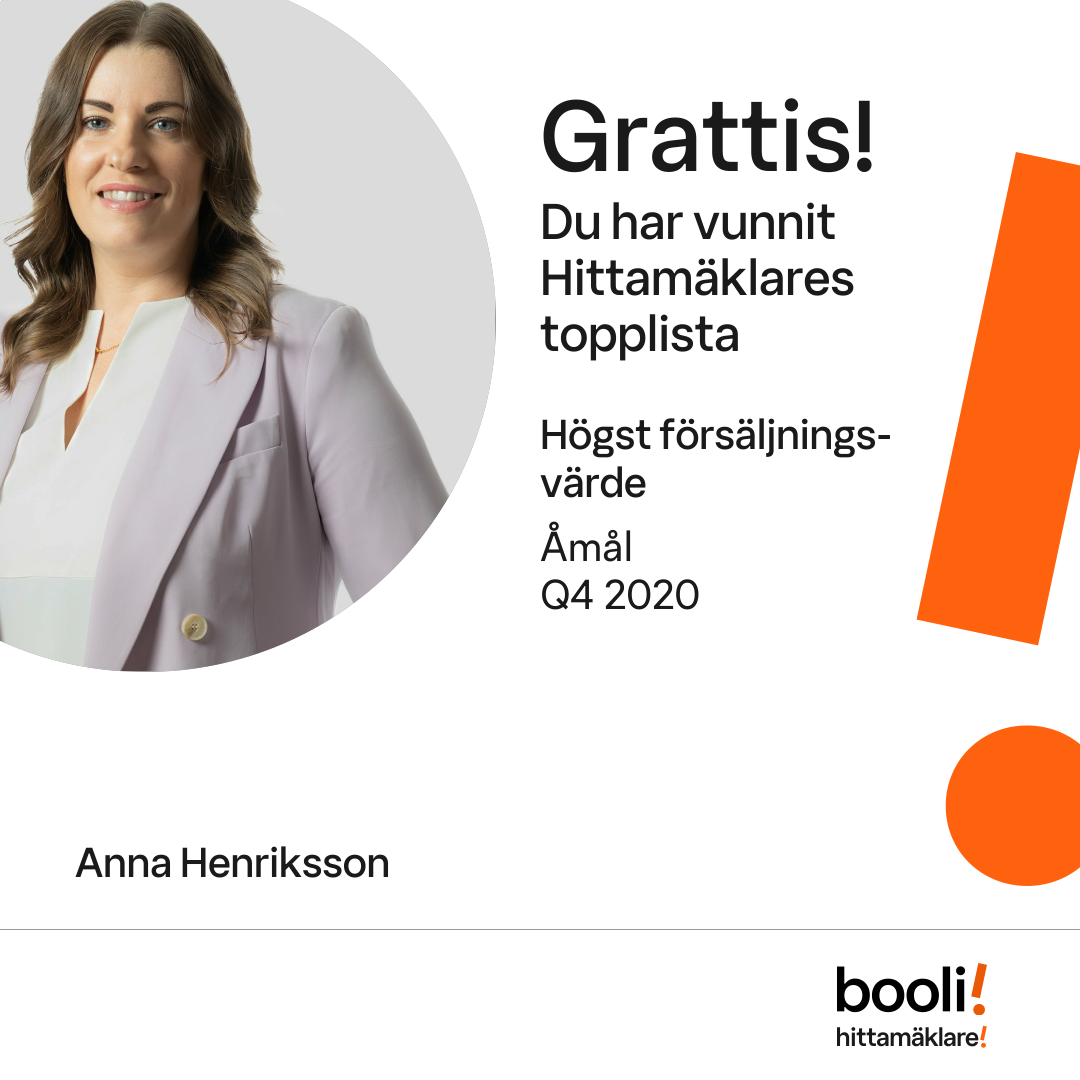 Statistik för publicerade bostäder, försäljningar och omdömen baseras på data från Booli och Hittamäklare. Statistiken för försäljningar avser inrapporterade och verifierade slutpriser från mäklare eller av Booli inhämtade och verifierade slutpriser. Statistiken för publicerade bostäder baseras på information som publicerats på Booli.se. Statistik för omdömen och rekommendationer baseras på omdömen från säljare som lämnats via Booli och Hittamäklare.