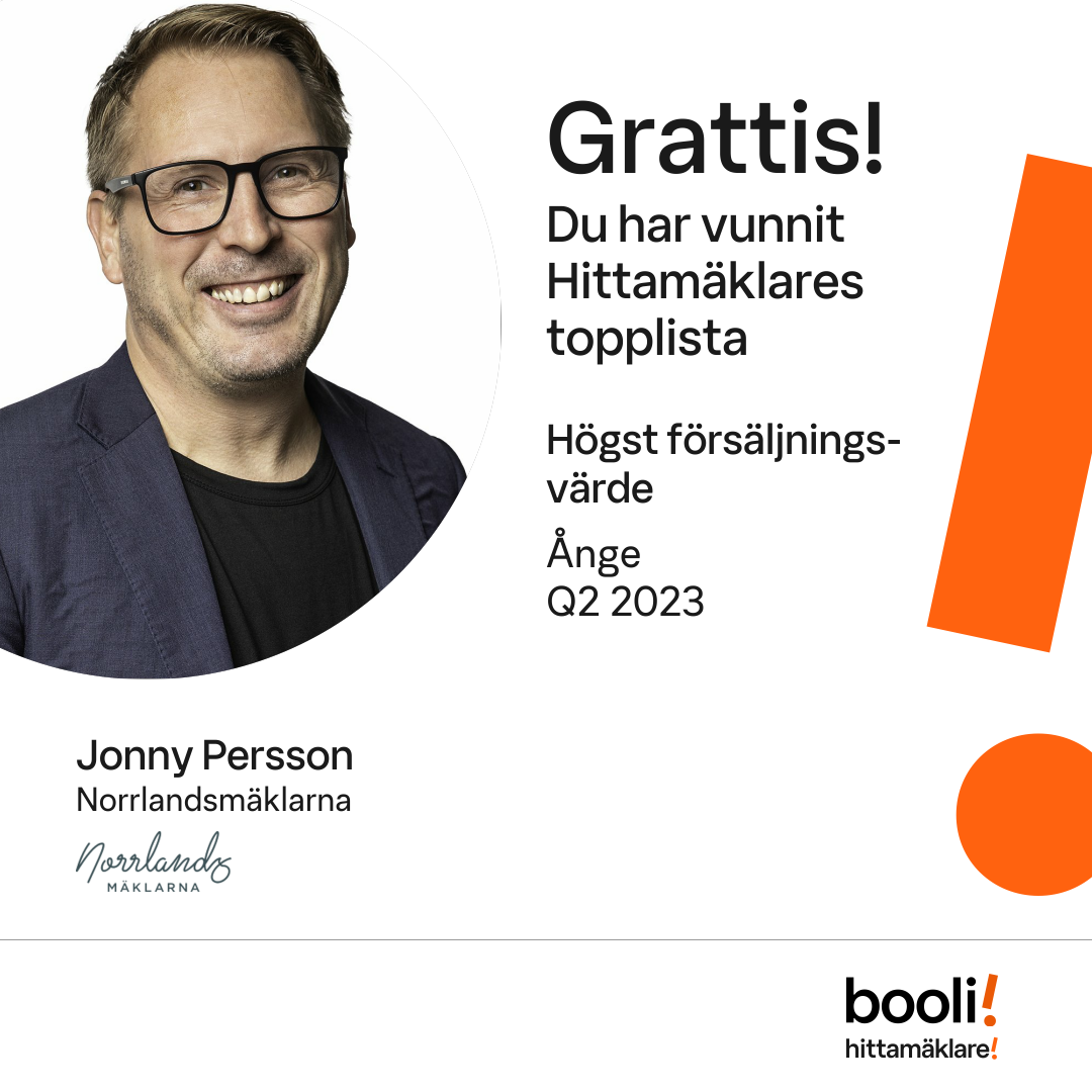 Statistik för publicerade bostäder, försäljningar och omdömen baseras på data från Booli och Hittamäklare. Statistiken för försäljningar avser inrapporterade och verifierade slutpriser från mäklare eller av Booli inhämtade och verifierade slutpriser. Statistiken för publicerade bostäder baseras på information som publicerats på Booli.se. Statistik för omdömen och rekommendationer baseras på omdömen från säljare som lämnats via Booli och Hittamäklare.