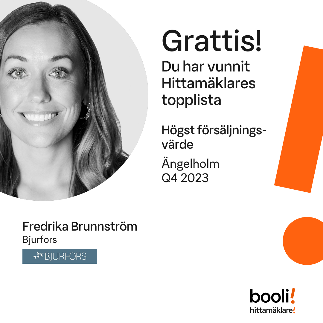Statistik för publicerade bostäder, försäljningar och omdömen baseras på data från Booli och Hittamäklare. Statistiken för försäljningar avser inrapporterade och verifierade slutpriser från mäklare eller av Booli inhämtade och verifierade slutpriser. Statistiken för publicerade bostäder baseras på information som publicerats på Booli.se. Statistik för omdömen och rekommendationer baseras på omdömen från säljare som lämnats via Booli och Hittamäklare.