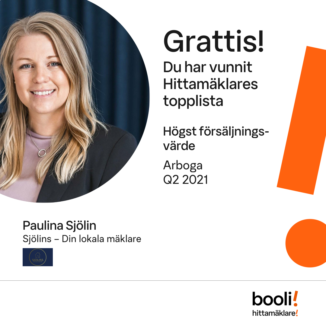 Statistik för publicerade bostäder, försäljningar och omdömen baseras på data från Booli och Hittamäklare. Statistiken för försäljningar avser inrapporterade och verifierade slutpriser från mäklare eller av Booli inhämtade och verifierade slutpriser. Statistiken för publicerade bostäder baseras på information som publicerats på Booli.se. Statistik för omdömen och rekommendationer baseras på omdömen från säljare som lämnats via Booli och Hittamäklare.