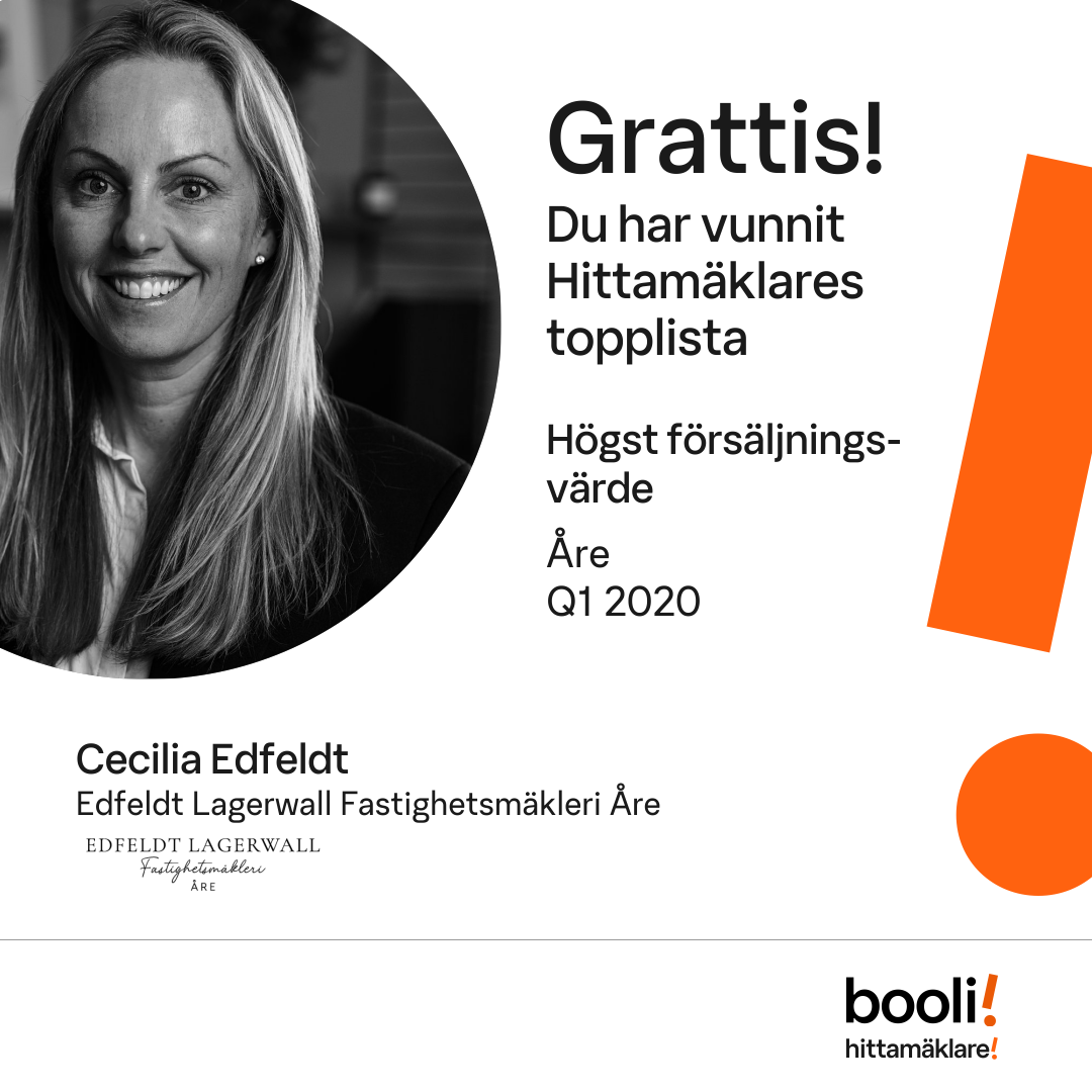 Statistik för publicerade bostäder, försäljningar och omdömen baseras på data från Booli och Hittamäklare. Statistiken för försäljningar avser inrapporterade och verifierade slutpriser från mäklare eller av Booli inhämtade och verifierade slutpriser. Statistiken för publicerade bostäder baseras på information som publicerats på Booli.se. Statistik för omdömen och rekommendationer baseras på omdömen från säljare som lämnats via Booli och Hittamäklare.
