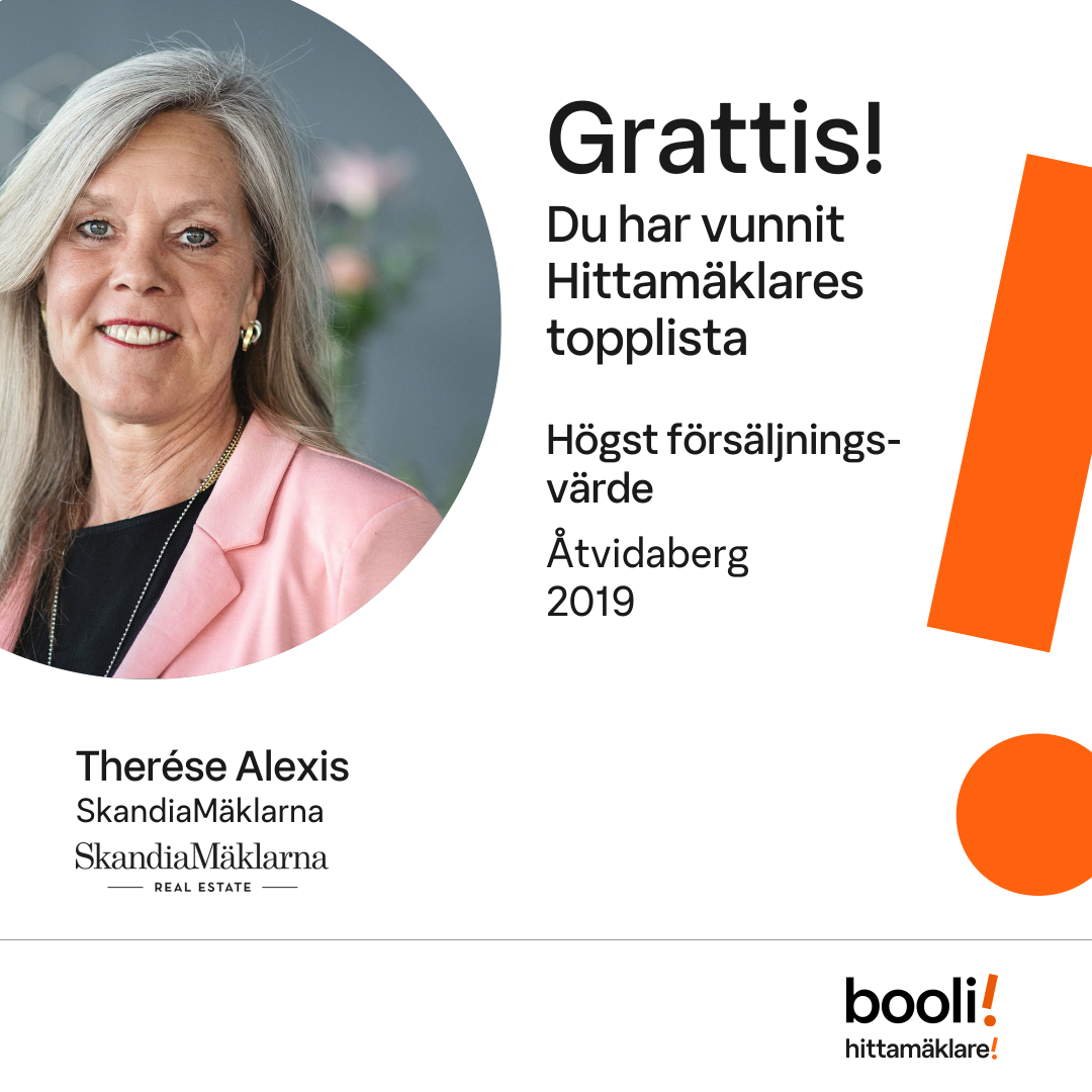 Statistik för publicerade bostäder, försäljningar och omdömen baseras på data från Booli och Hittamäklare. Statistiken för försäljningar avser inrapporterade och verifierade slutpriser från mäklare eller av Booli inhämtade och verifierade slutpriser. Statistiken för publicerade bostäder baseras på information som publicerats på Booli.se. Statistik för omdömen och rekommendationer baseras på omdömen från säljare som lämnats via Booli och Hittamäklare.