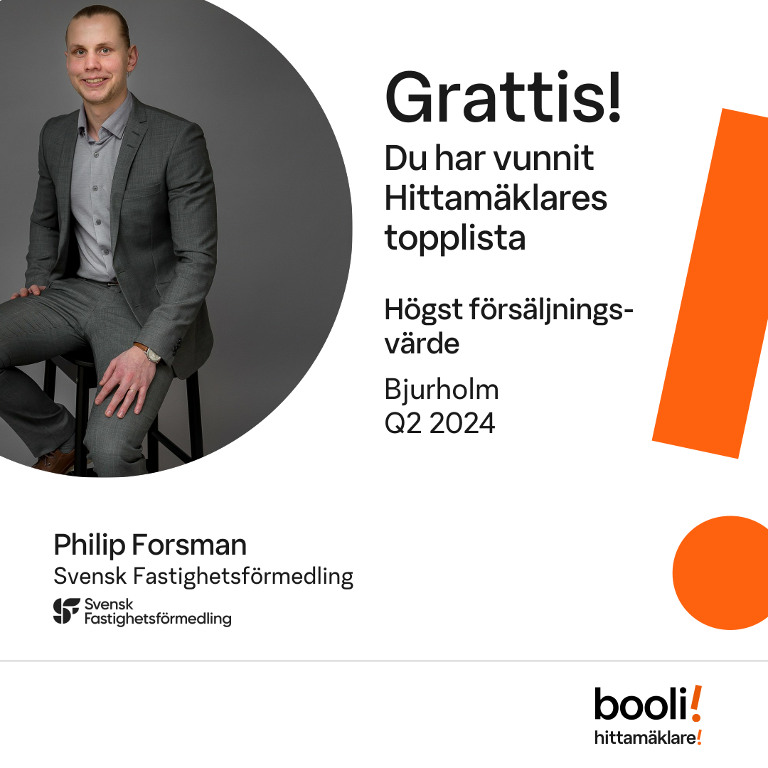 Statistik för publicerade bostäder, försäljningar och omdömen baseras på data från Booli och Hittamäklare. Statistiken för försäljningar avser inrapporterade och verifierade slutpriser från mäklare eller av Booli inhämtade och verifierade slutpriser. Statistiken för publicerade bostäder baseras på information som publicerats på Booli.se. Statistik för omdömen och rekommendationer baseras på omdömen från säljare som lämnats via Booli och Hittamäklare.