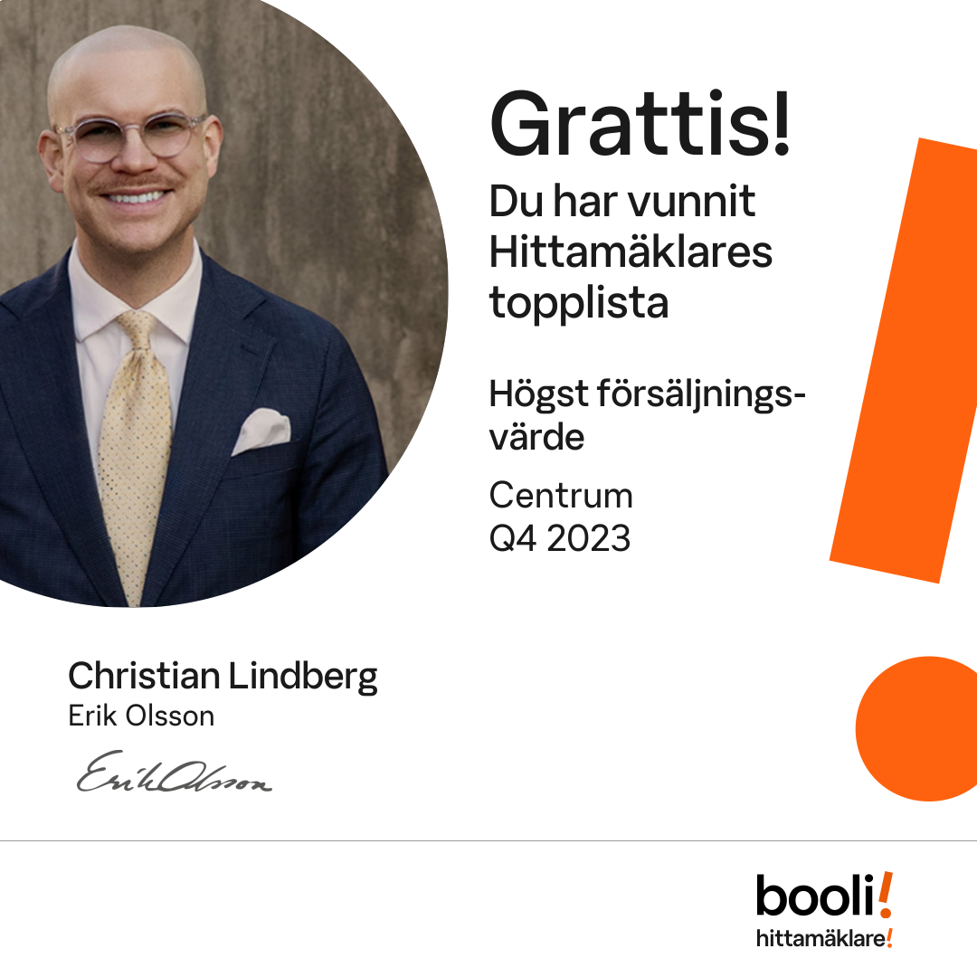 Statistik för publicerade bostäder, försäljningar och omdömen baseras på data från Booli och Hittamäklare. Statistiken för försäljningar avser inrapporterade och verifierade slutpriser från mäklare eller av Booli inhämtade och verifierade slutpriser. Statistiken för publicerade bostäder baseras på information som publicerats på Booli.se. Statistik för omdömen och rekommendationer baseras på omdömen från säljare som lämnats via Booli och Hittamäklare.