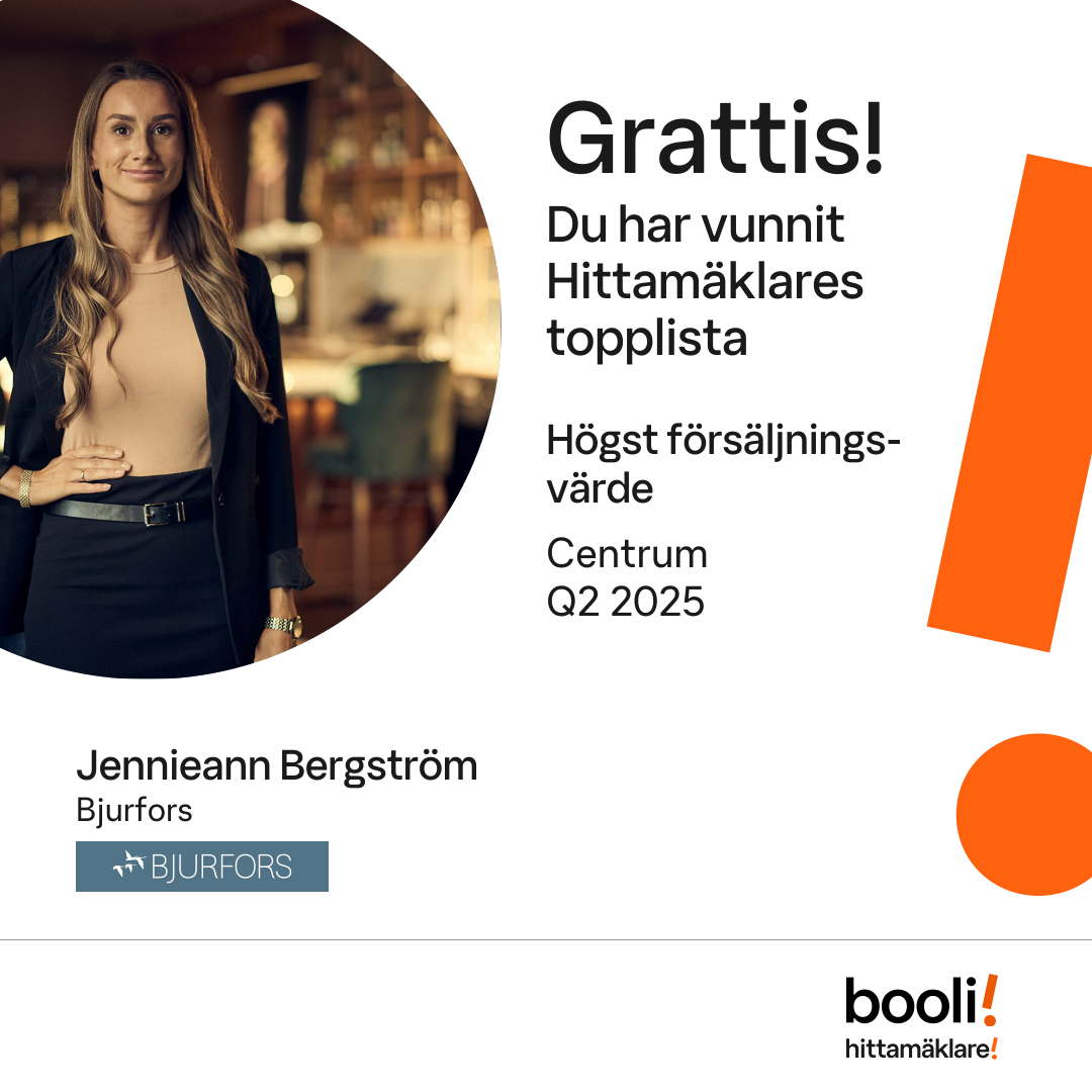 Statistik för publicerade bostäder, försäljningar och omdömen baseras på data från Booli och Hittamäklare. Statistiken för försäljningar avser inrapporterade och verifierade slutpriser från mäklare eller av Booli inhämtade och verifierade slutpriser. Statistiken för publicerade bostäder baseras på information som publicerats på Booli.se. Statistik för omdömen och rekommendationer baseras på omdömen från säljare som lämnats via Booli och Hittamäklare.