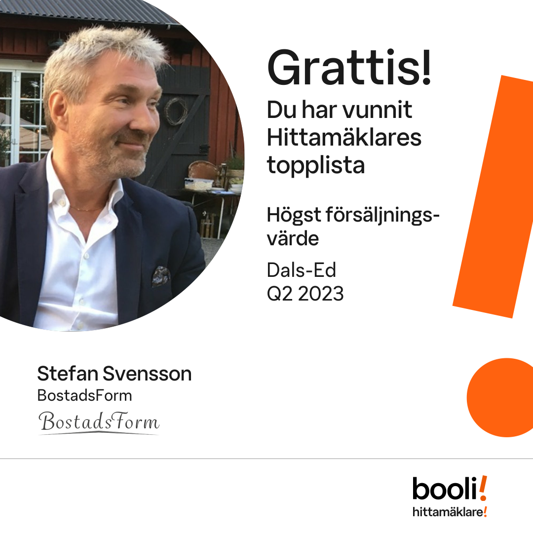 Statistik för publicerade bostäder, försäljningar och omdömen baseras på data från Booli och Hittamäklare. Statistiken för försäljningar avser inrapporterade och verifierade slutpriser från mäklare eller av Booli inhämtade och verifierade slutpriser. Statistiken för publicerade bostäder baseras på information som publicerats på Booli.se. Statistik för omdömen och rekommendationer baseras på omdömen från säljare som lämnats via Booli och Hittamäklare.
