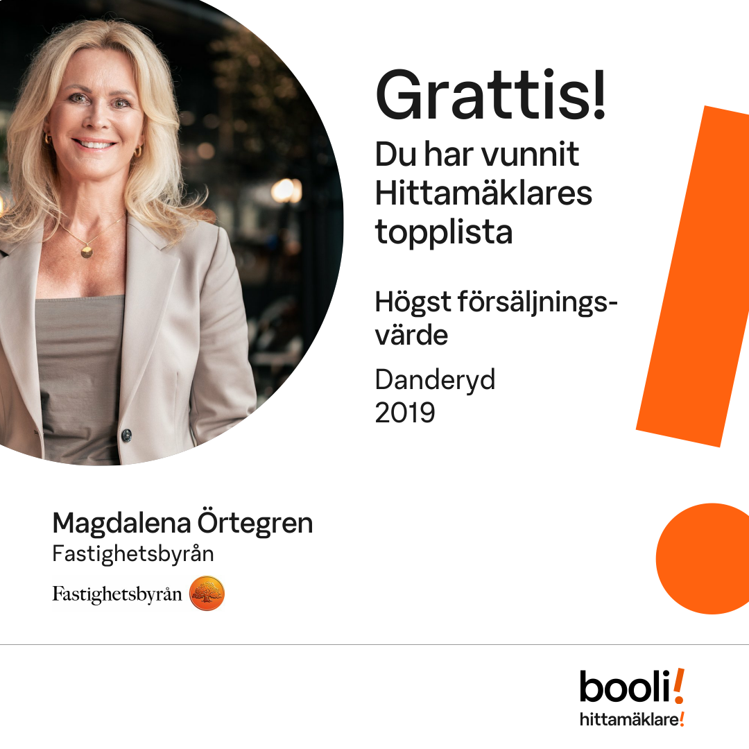 Statistik för publicerade bostäder, försäljningar och omdömen baseras på data från Booli och Hittamäklare. Statistiken för försäljningar avser inrapporterade och verifierade slutpriser från mäklare eller av Booli inhämtade och verifierade slutpriser. Statistiken för publicerade bostäder baseras på information som publicerats på Booli.se. Statistik för omdömen och rekommendationer baseras på omdömen från säljare som lämnats via Booli och Hittamäklare.