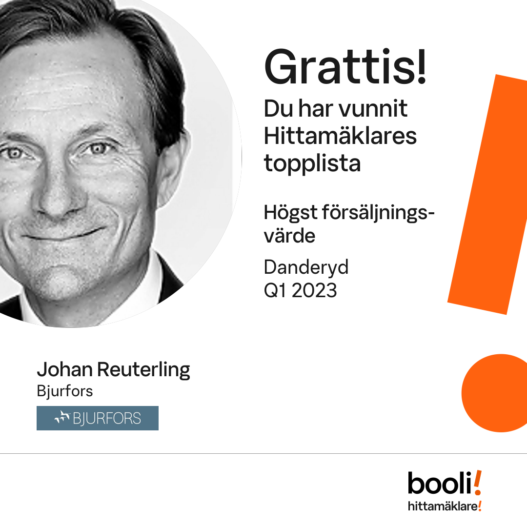 Statistik för publicerade bostäder, försäljningar och omdömen baseras på data från Booli och Hittamäklare. Statistiken för försäljningar avser inrapporterade och verifierade slutpriser från mäklare eller av Booli inhämtade och verifierade slutpriser. Statistiken för publicerade bostäder baseras på information som publicerats på Booli.se. Statistik för omdömen och rekommendationer baseras på omdömen från säljare som lämnats via Booli och Hittamäklare.