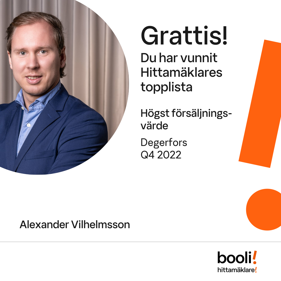 Statistik för publicerade bostäder, försäljningar och omdömen baseras på data från Booli och Hittamäklare. Statistiken för försäljningar avser inrapporterade och verifierade slutpriser från mäklare eller av Booli inhämtade och verifierade slutpriser. Statistiken för publicerade bostäder baseras på information som publicerats på Booli.se. Statistik för omdömen och rekommendationer baseras på omdömen från säljare som lämnats via Booli och Hittamäklare.