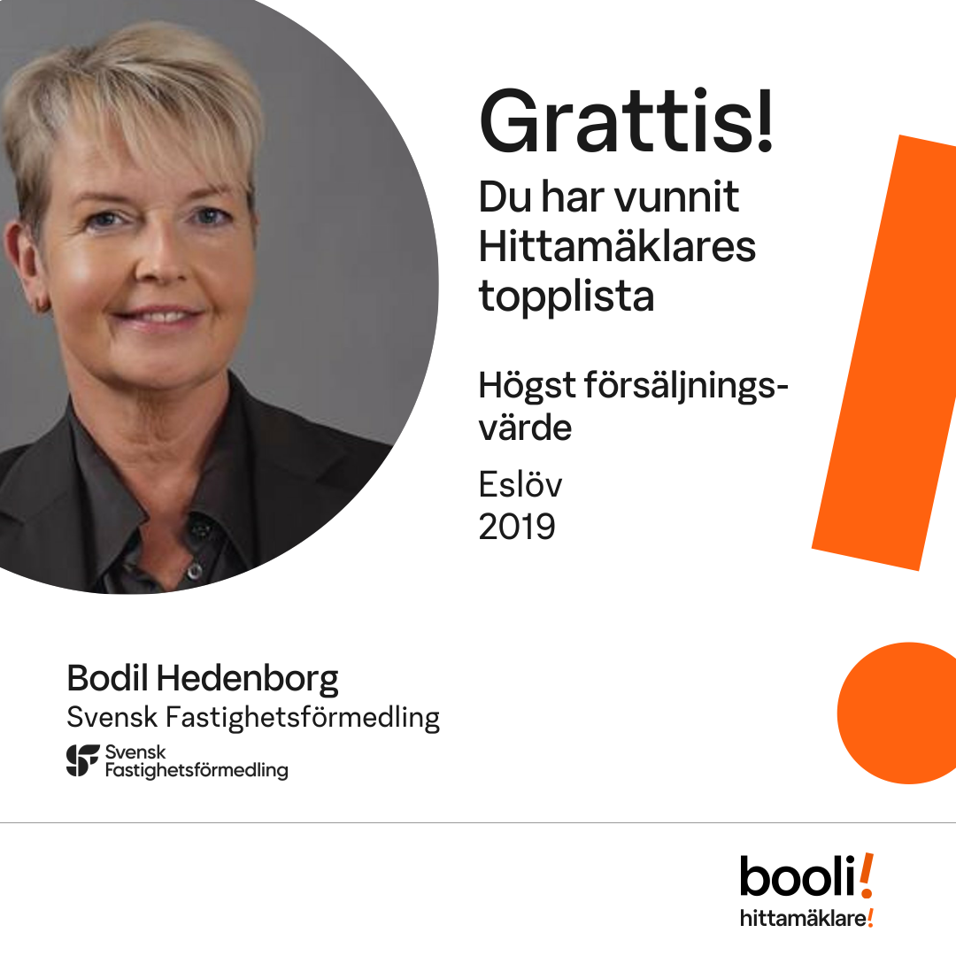 Statistik för publicerade bostäder, försäljningar och omdömen baseras på data från Booli och Hittamäklare. Statistiken för försäljningar avser inrapporterade och verifierade slutpriser från mäklare eller av Booli inhämtade och verifierade slutpriser. Statistiken för publicerade bostäder baseras på information som publicerats på Booli.se. Statistik för omdömen och rekommendationer baseras på omdömen från säljare som lämnats via Booli och Hittamäklare.