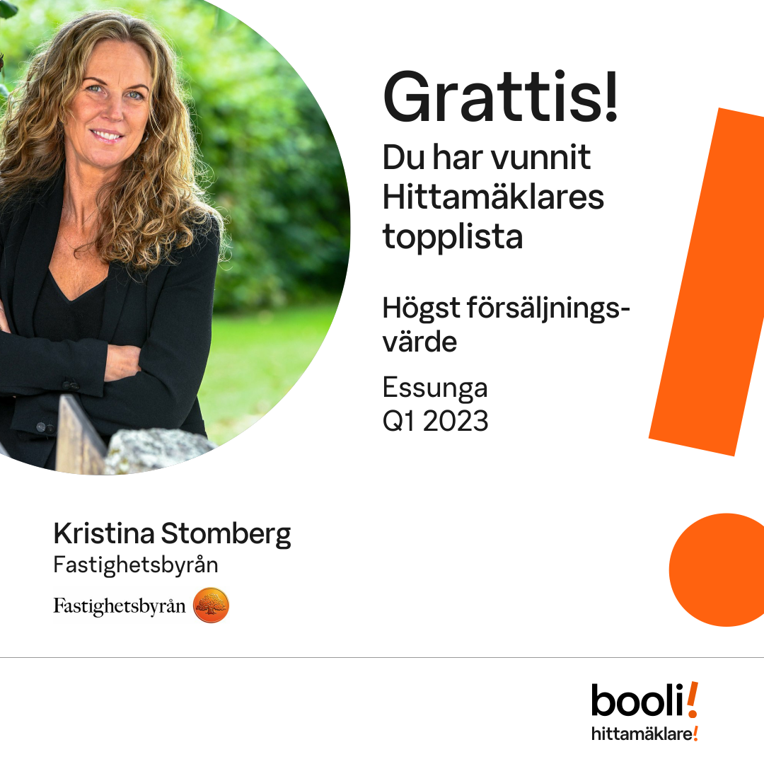 Statistik för publicerade bostäder, försäljningar och omdömen baseras på data från Booli och Hittamäklare. Statistiken för försäljningar avser inrapporterade och verifierade slutpriser från mäklare eller av Booli inhämtade och verifierade slutpriser. Statistiken för publicerade bostäder baseras på information som publicerats på Booli.se. Statistik för omdömen och rekommendationer baseras på omdömen från säljare som lämnats via Booli och Hittamäklare.