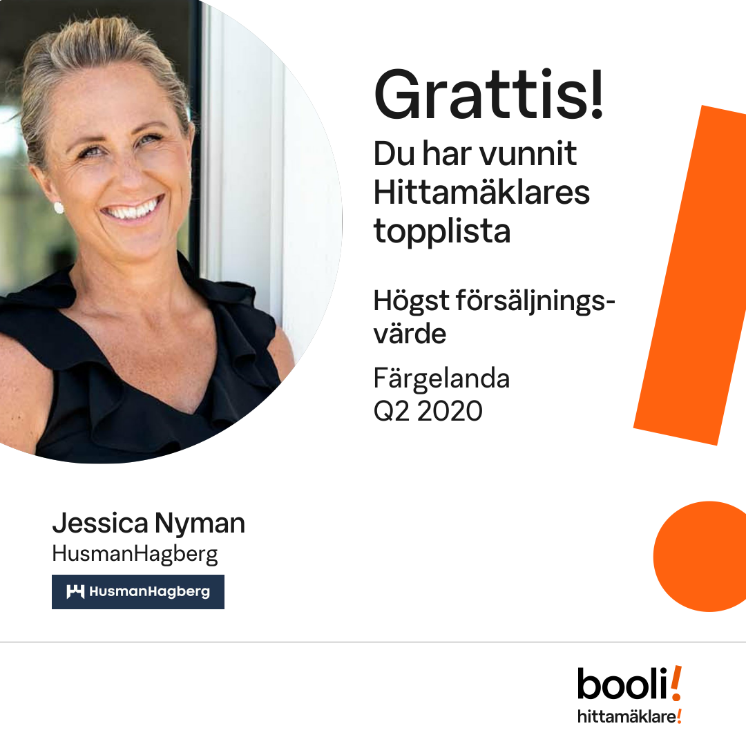 Statistik för publicerade bostäder, försäljningar och omdömen baseras på data från Booli och Hittamäklare. Statistiken för försäljningar avser inrapporterade och verifierade slutpriser från mäklare eller av Booli inhämtade och verifierade slutpriser. Statistiken för publicerade bostäder baseras på information som publicerats på Booli.se. Statistik för omdömen och rekommendationer baseras på omdömen från säljare som lämnats via Booli och Hittamäklare.
