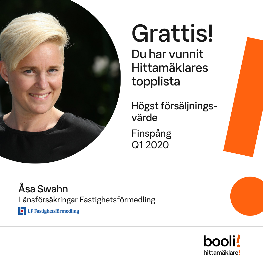 Statistik för publicerade bostäder, försäljningar och omdömen baseras på data från Booli och Hittamäklare. Statistiken för försäljningar avser inrapporterade och verifierade slutpriser från mäklare eller av Booli inhämtade och verifierade slutpriser. Statistiken för publicerade bostäder baseras på information som publicerats på Booli.se. Statistik för omdömen och rekommendationer baseras på omdömen från säljare som lämnats via Booli och Hittamäklare.
