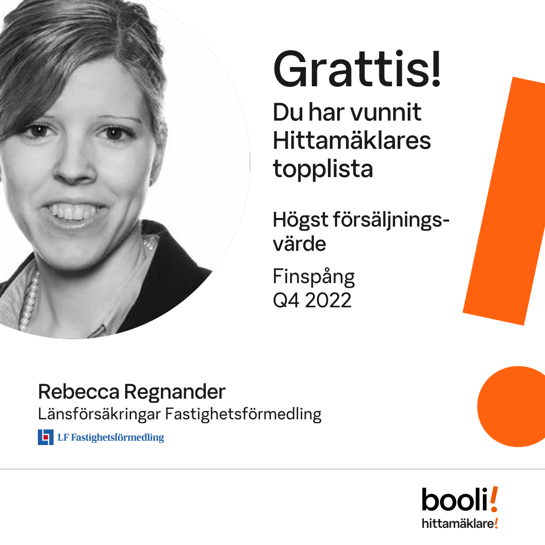 Statistik för publicerade bostäder, försäljningar och omdömen baseras på data från Booli och Hittamäklare. Statistiken för försäljningar avser inrapporterade och verifierade slutpriser från mäklare eller av Booli inhämtade och verifierade slutpriser. Statistiken för publicerade bostäder baseras på information som publicerats på Booli.se. Statistik för omdömen och rekommendationer baseras på omdömen från säljare som lämnats via Booli och Hittamäklare.