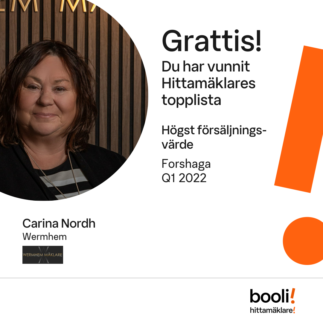 Statistik för publicerade bostäder, försäljningar och omdömen baseras på data från Booli och Hittamäklare. Statistiken för försäljningar avser inrapporterade och verifierade slutpriser från mäklare eller av Booli inhämtade och verifierade slutpriser. Statistiken för publicerade bostäder baseras på information som publicerats på Booli.se. Statistik för omdömen och rekommendationer baseras på omdömen från säljare som lämnats via Booli och Hittamäklare.