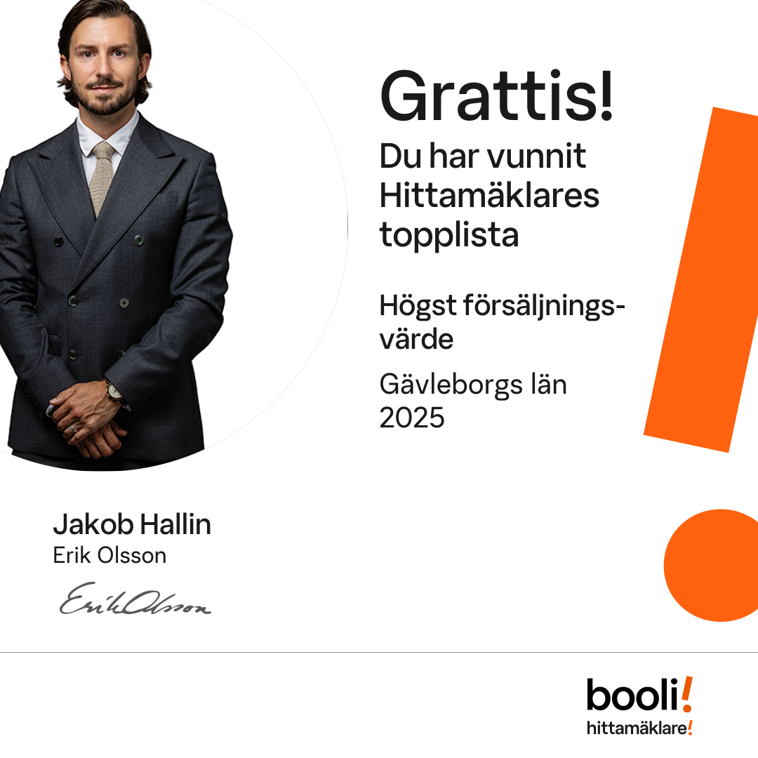 Statistik för publicerade bostäder, försäljningar och omdömen baseras på data från Booli och Hittamäklare. Statistiken för försäljningar avser inrapporterade och verifierade slutpriser från mäklare eller av Booli inhämtade och verifierade slutpriser. Statistiken för publicerade bostäder baseras på information som publicerats på Booli.se. Statistik för omdömen och rekommendationer baseras på omdömen från säljare som lämnats via Booli och Hittamäklare.