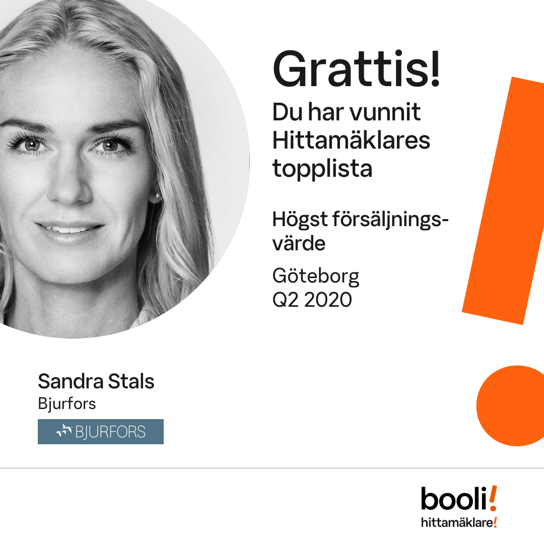 Statistik för publicerade bostäder, försäljningar och omdömen baseras på data från Booli och Hittamäklare. Statistiken för försäljningar avser inrapporterade och verifierade slutpriser från mäklare eller av Booli inhämtade och verifierade slutpriser. Statistiken för publicerade bostäder baseras på information som publicerats på Booli.se. Statistik för omdömen och rekommendationer baseras på omdömen från säljare som lämnats via Booli och Hittamäklare.