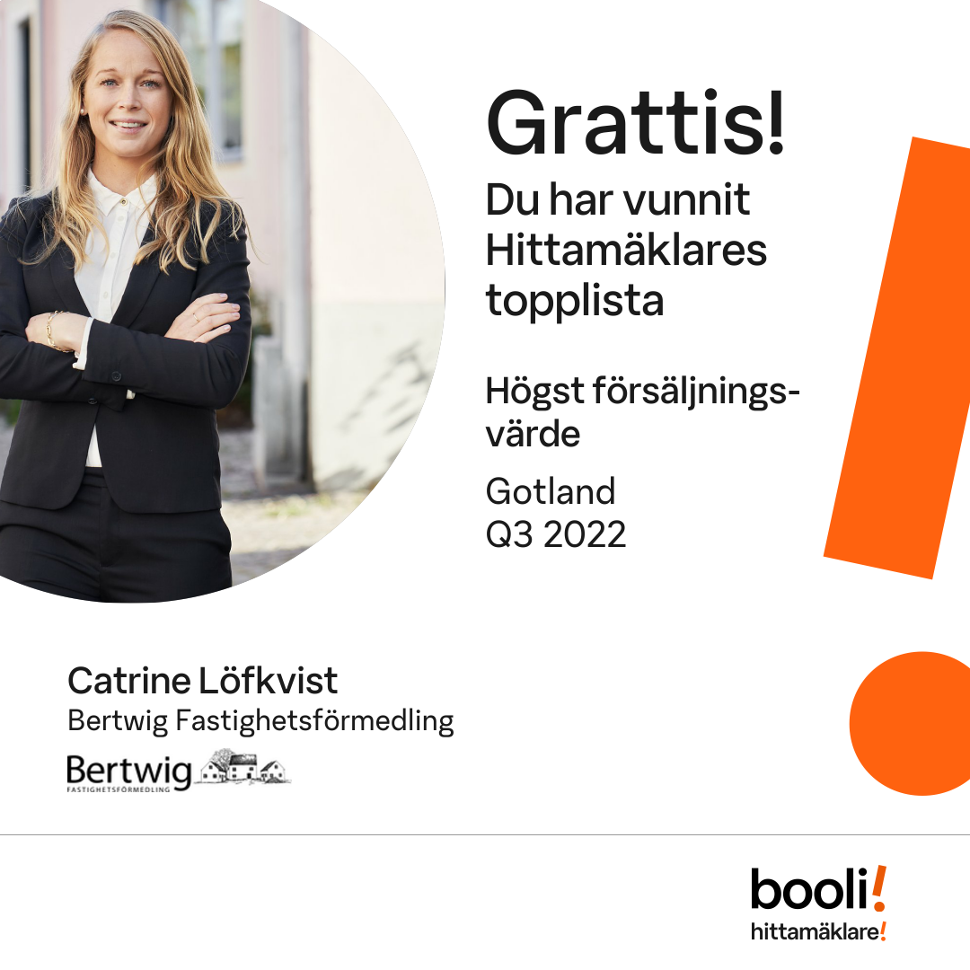 Statistik för publicerade bostäder, försäljningar och omdömen baseras på data från Booli och Hittamäklare. Statistiken för försäljningar avser inrapporterade och verifierade slutpriser från mäklare eller av Booli inhämtade och verifierade slutpriser. Statistiken för publicerade bostäder baseras på information som publicerats på Booli.se. Statistik för omdömen och rekommendationer baseras på omdömen från säljare som lämnats via Booli och Hittamäklare.