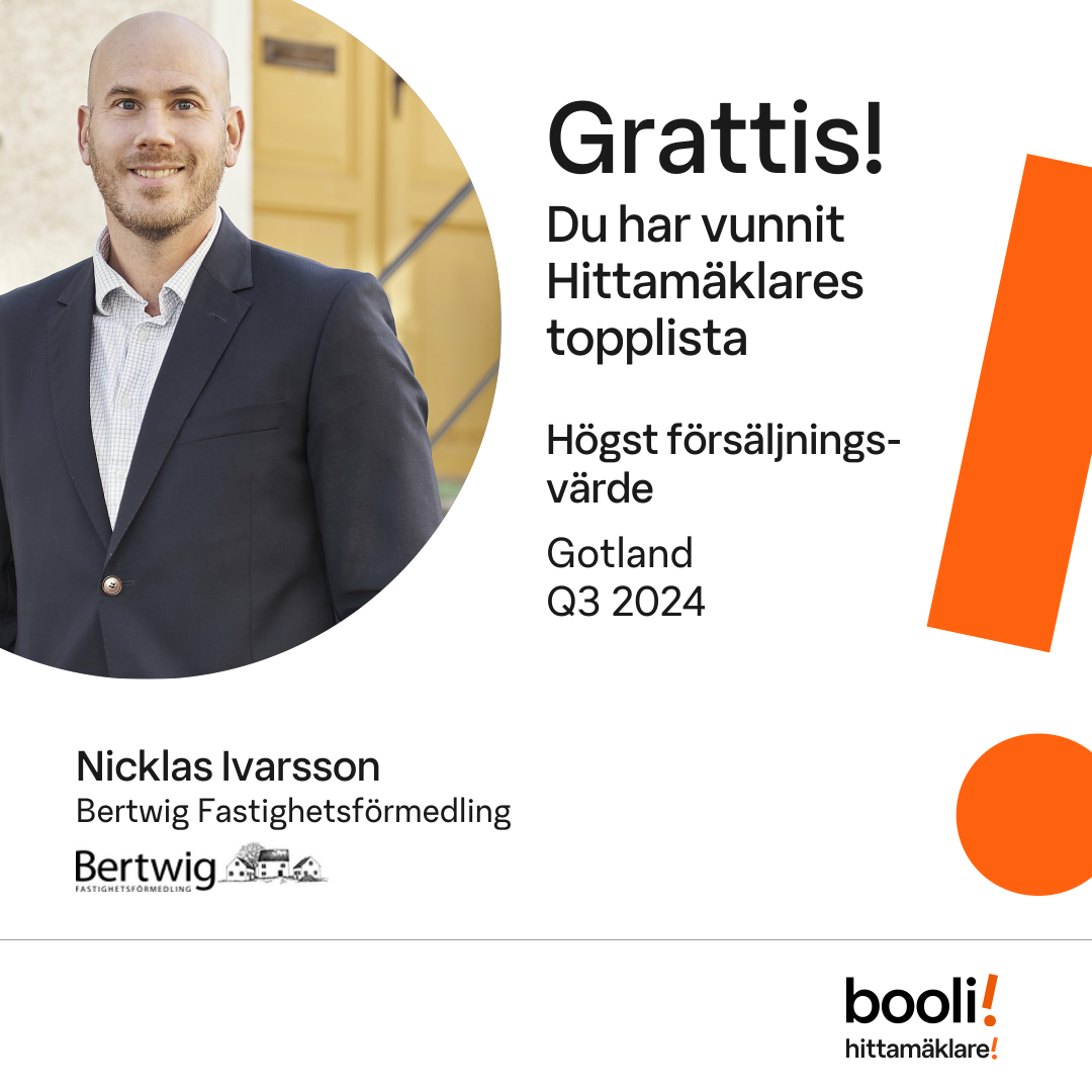 Statistik för publicerade bostäder, försäljningar och omdömen baseras på data från Booli och Hittamäklare. Statistiken för försäljningar avser inrapporterade och verifierade slutpriser från mäklare eller av Booli inhämtade och verifierade slutpriser. Statistiken för publicerade bostäder baseras på information som publicerats på Booli.se. Statistik för omdömen och rekommendationer baseras på omdömen från säljare som lämnats via Booli och Hittamäklare.