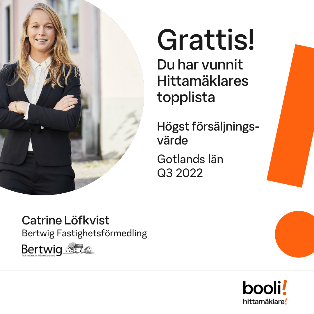 Statistik för publicerade bostäder, försäljningar och omdömen baseras på data från Booli och Hittamäklare. Statistiken för försäljningar avser inrapporterade och verifierade slutpriser från mäklare eller av Booli inhämtade och verifierade slutpriser. Statistiken för publicerade bostäder baseras på information som publicerats på Booli.se. Statistik för omdömen och rekommendationer baseras på omdömen från säljare som lämnats via Booli och Hittamäklare.
