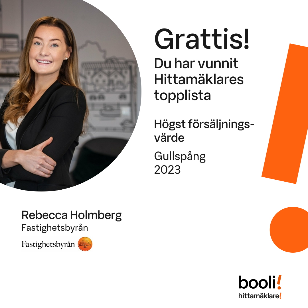 Statistik för publicerade bostäder, försäljningar och omdömen baseras på data från Booli och Hittamäklare. Statistiken för försäljningar avser inrapporterade och verifierade slutpriser från mäklare eller av Booli inhämtade och verifierade slutpriser. Statistiken för publicerade bostäder baseras på information som publicerats på Booli.se. Statistik för omdömen och rekommendationer baseras på omdömen från säljare som lämnats via Booli och Hittamäklare.