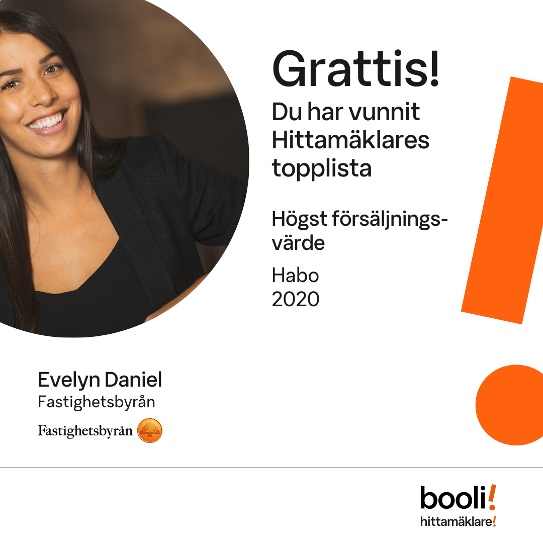 Statistik för publicerade bostäder, försäljningar och omdömen baseras på data från Booli och Hittamäklare. Statistiken för försäljningar avser inrapporterade och verifierade slutpriser från mäklare eller av Booli inhämtade och verifierade slutpriser. Statistiken för publicerade bostäder baseras på information som publicerats på Booli.se. Statistik för omdömen och rekommendationer baseras på omdömen från säljare som lämnats via Booli och Hittamäklare.