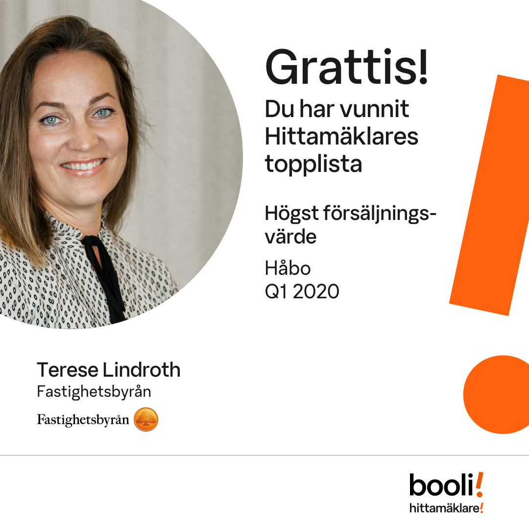 Statistik för publicerade bostäder, försäljningar och omdömen baseras på data från Booli och Hittamäklare. Statistiken för försäljningar avser inrapporterade och verifierade slutpriser från mäklare eller av Booli inhämtade och verifierade slutpriser. Statistiken för publicerade bostäder baseras på information som publicerats på Booli.se. Statistik för omdömen och rekommendationer baseras på omdömen från säljare som lämnats via Booli och Hittamäklare.