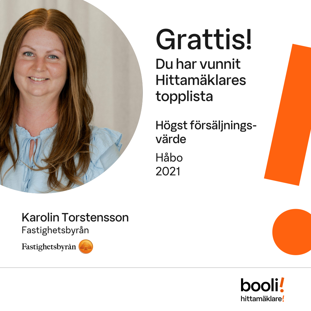 Statistik för publicerade bostäder, försäljningar och omdömen baseras på data från Booli och Hittamäklare. Statistiken för försäljningar avser inrapporterade och verifierade slutpriser från mäklare eller av Booli inhämtade och verifierade slutpriser. Statistiken för publicerade bostäder baseras på information som publicerats på Booli.se. Statistik för omdömen och rekommendationer baseras på omdömen från säljare som lämnats via Booli och Hittamäklare.