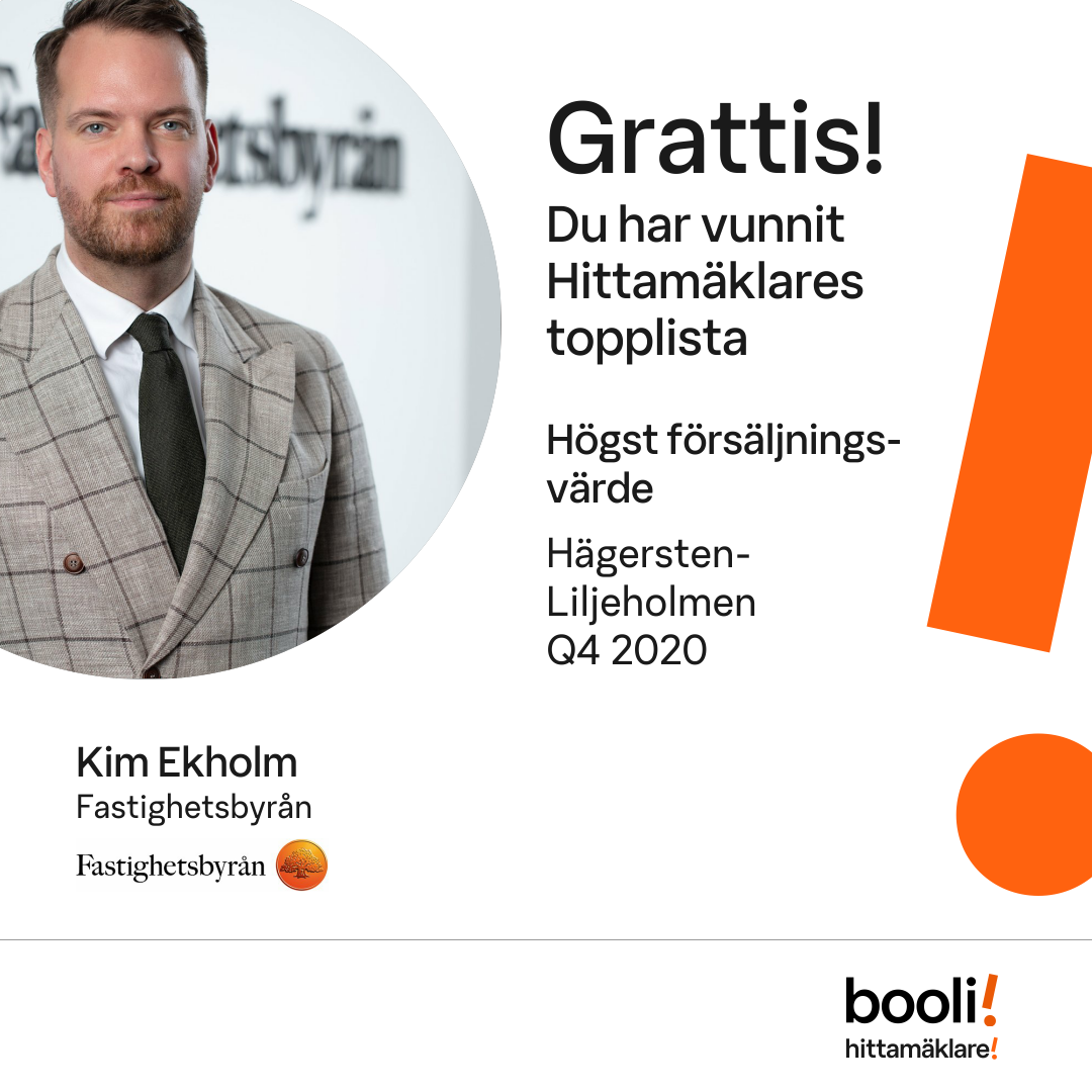 Statistik för publicerade bostäder, försäljningar och omdömen baseras på data från Booli och Hittamäklare. Statistiken för försäljningar avser inrapporterade och verifierade slutpriser från mäklare eller av Booli inhämtade och verifierade slutpriser. Statistiken för publicerade bostäder baseras på information som publicerats på Booli.se. Statistik för omdömen och rekommendationer baseras på omdömen från säljare som lämnats via Booli och Hittamäklare.